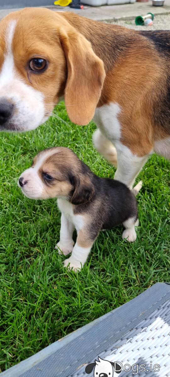 They are vaccinated, wormed & microchipped. They are affectionate, playful and very smart too. They are around children so are used to noise and been handled. Mam and dad are purebred Beagles and are also friendly and affectionate dogs.