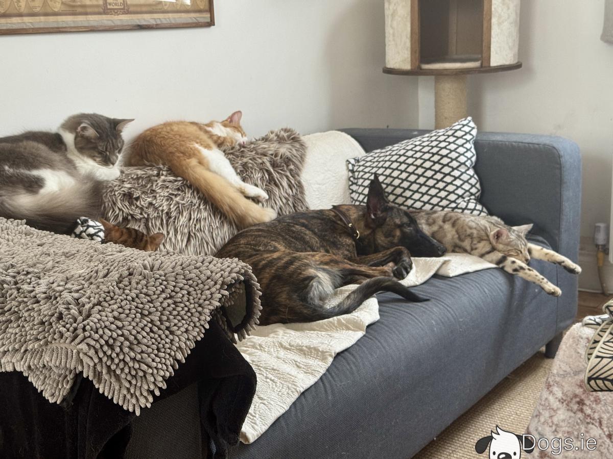 As you can see she is most likely a Belgium Malinois or Dutch Shepherd/Sighthound cross and she unites the best characteristics of both. Very loyal and protective but obedient and easy to train. Excited to go for a run or hike with you but just as happy when she can stay on the sofa for a day to recover. She is very forgiving, rather than perfectly scheduled days she just needs a balanced week which fits perfectly into most lifestyles - even if you have a job.