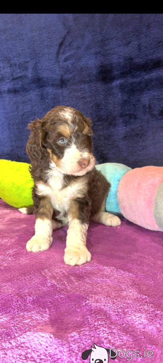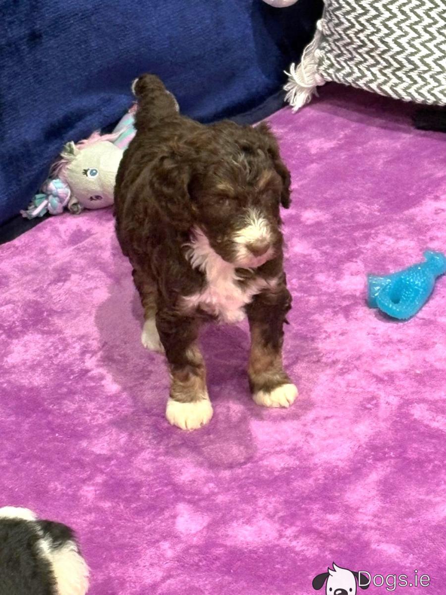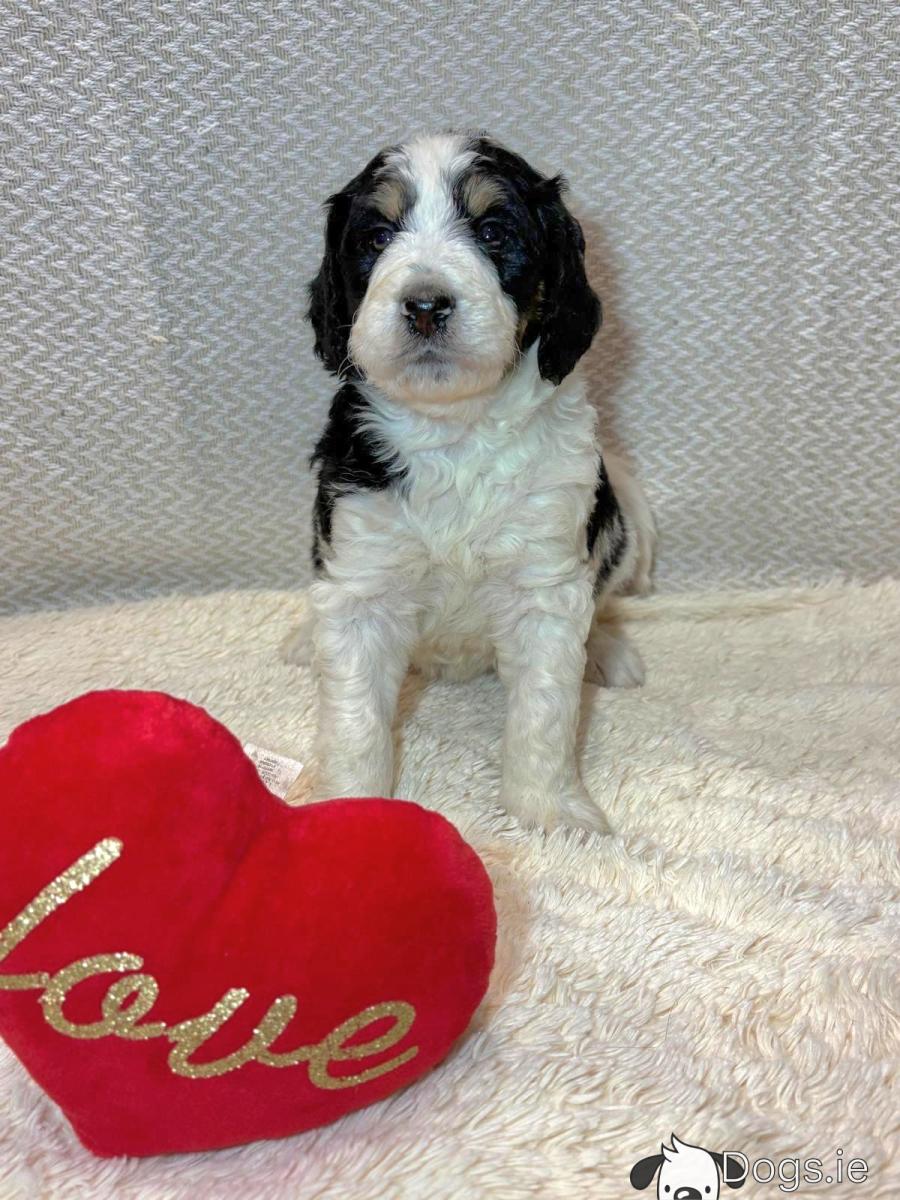 We have a delightful selection of flb Bernedoodle puppies available for sale in Dungannon co Tyrone These puppies are just over two months old and come in a variety of colours, including male and female tricolours (Brown, Black, and White) as well as a lovely female in chocolate and White. All puppies have been vaccinated and wormed, ensuring they are healthy and ready for their new homes. Both mum and dad are fully dna health tested clear and all paperwork can be viewed but unfortunately we will not be sending any photos of their paperwork viewed only in person.