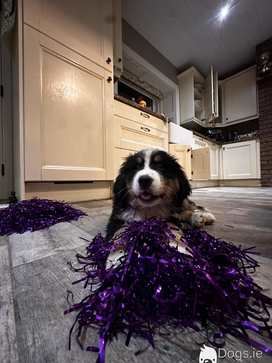Lovely friendly Bernese Mountain Dog puppies looking for their new homes. Both their parents are IKC registered and are our cherished family pets. The puppies enjoy daily playtime with our young children and are extremely well socialised & fun!