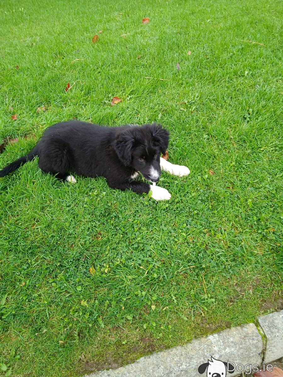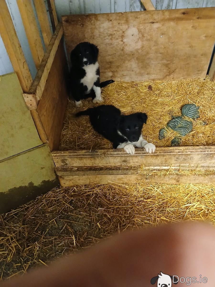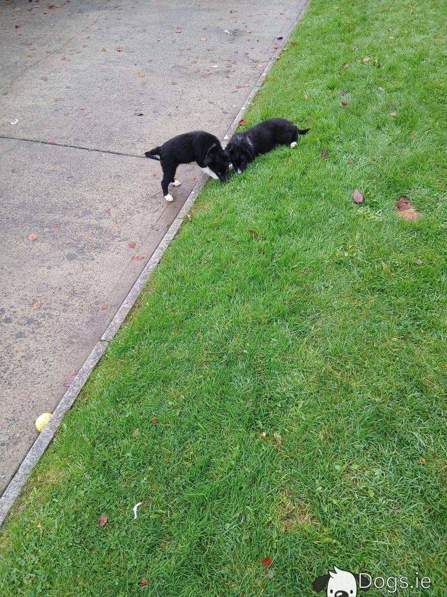 We have two female Border Collie puppies available for sale, both exhibiting the classic black and white colouring. These puppies are currently 11 weeks old and are the offspring of a black and white Border Collie and a blue merle Border Collie mother. They have been vaccinated and are ready to find their forever homes.