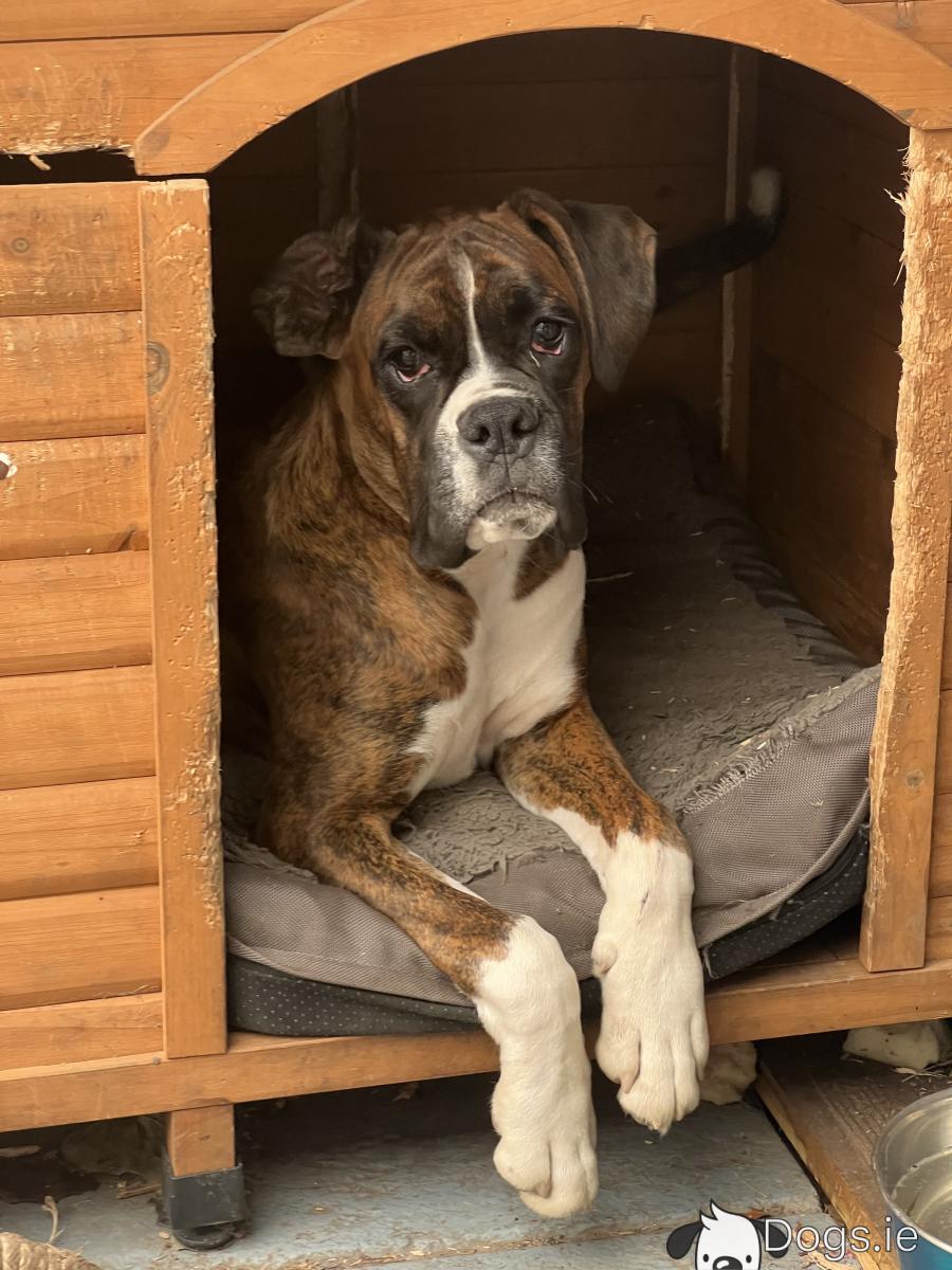 I am sadly looking for a new home for my lovely boxer due to not being able to give him the time he truly needs due to work commitments. He is an outdoor dog but could very well be trained to be an indoor family dog if given the time. He is a very smart dog and is very good around people but has a ball of energy so can be hyper and jumpy around people so maybe a note if you have kids to be aware.