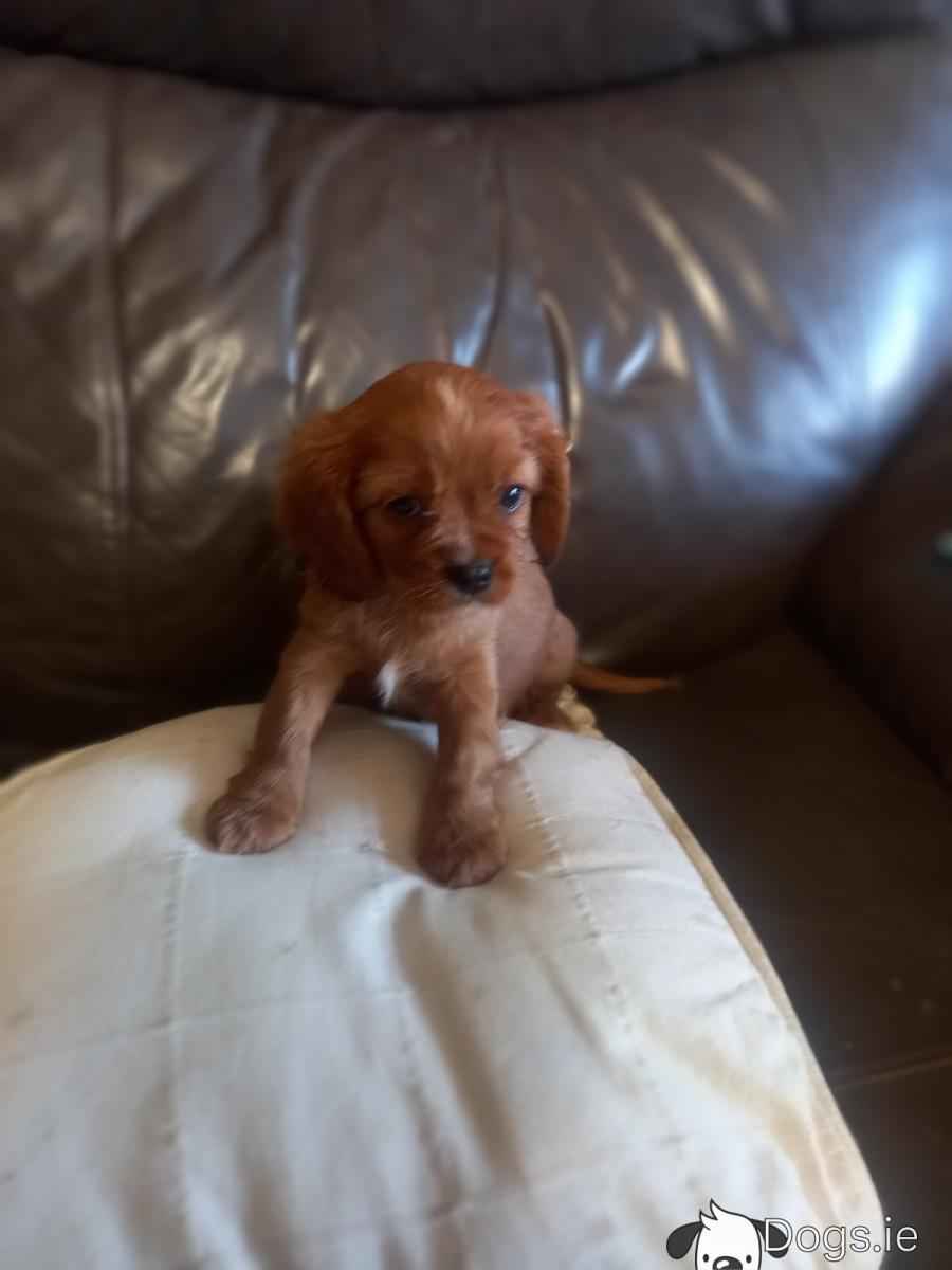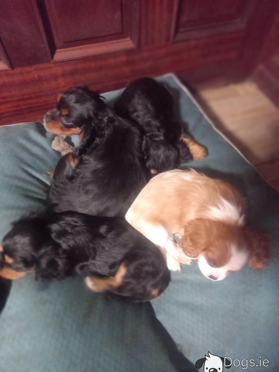 Breed only Cavalier King Charles. Bred from IKC registered parents. Puppies are kitchen reared, well socialised and follow their mother out to the yard to go to the toilet. They are microchipped, vet checked and vaccinated. They will go to their new home with a comfort toy, a sample bag of dog food and all relevant paperwork.