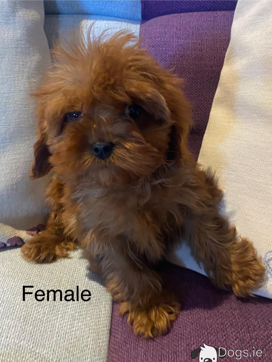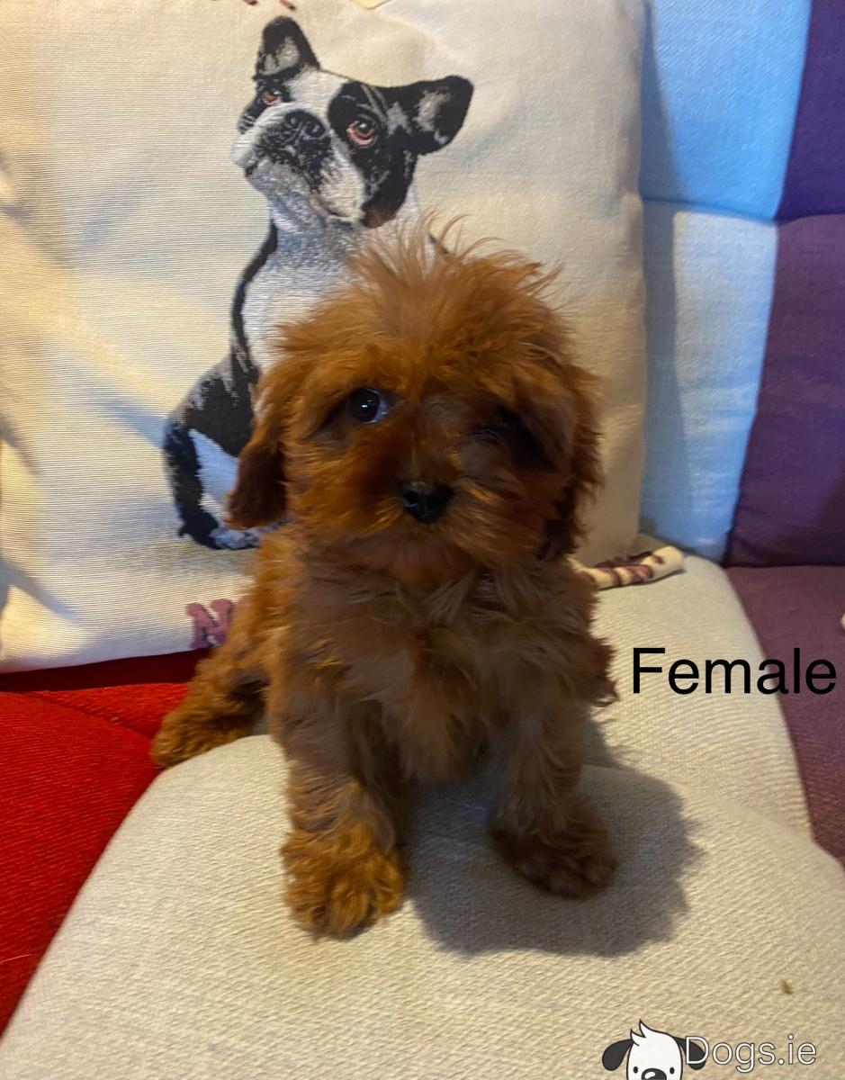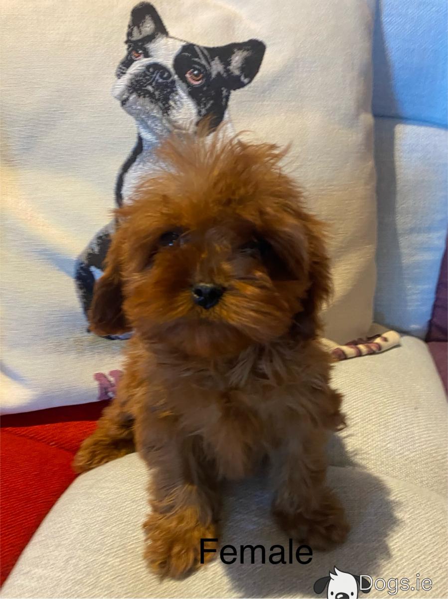 Cavapoos are known for their affectionate temperament, making them excellent companions for families and individuals alike. This breed is a cross between a black and tan Cavalier King Charles and our golden Toy Poodle, resulting in a friendly, intelligent, and highly trainable dog. With their hypoallergenic coats and playful nature, Cavapoos are perfect for those looking for a loving pet that fits well into various lifestyles.