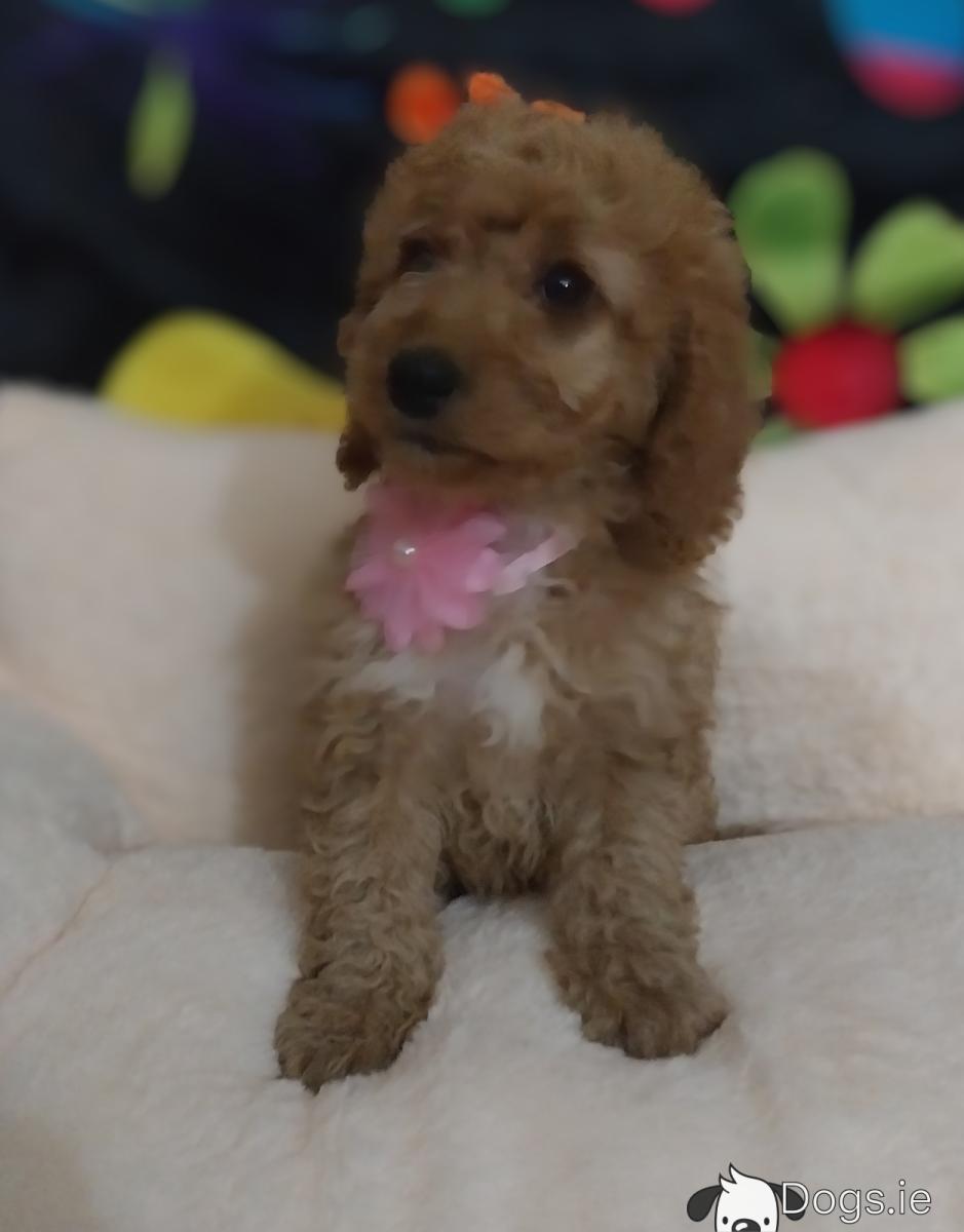 Mother is our Cavalier King Charles and Dad is our Miniature Poodle.