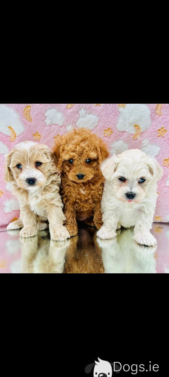 The puppies come in a variety of stunning colours including reds, apricots and red and whites, all with non shed and hypoallergenic coats.