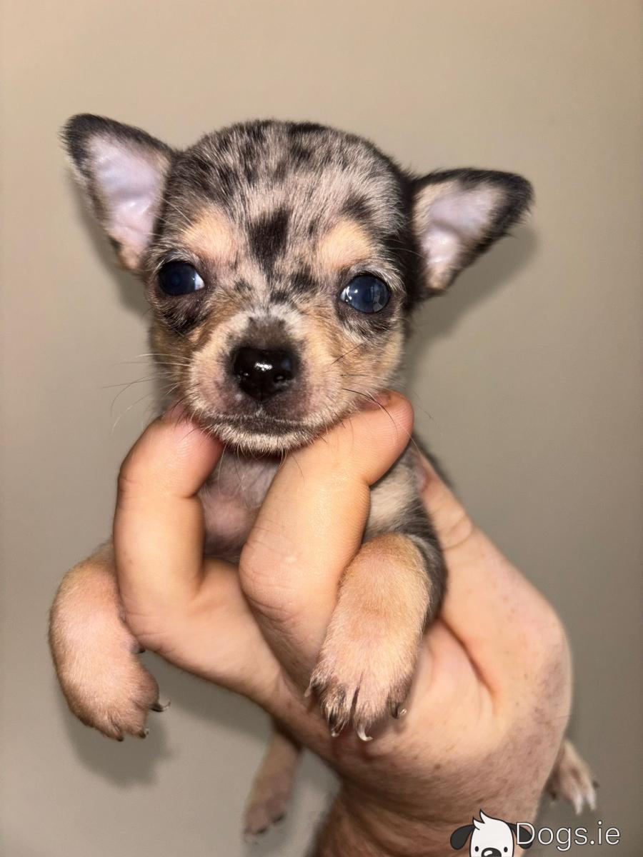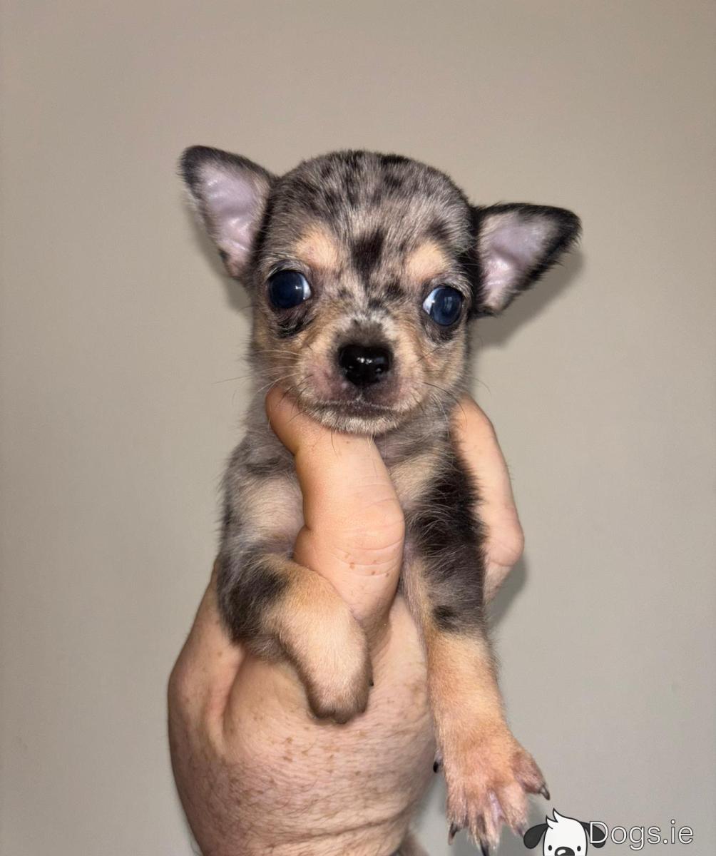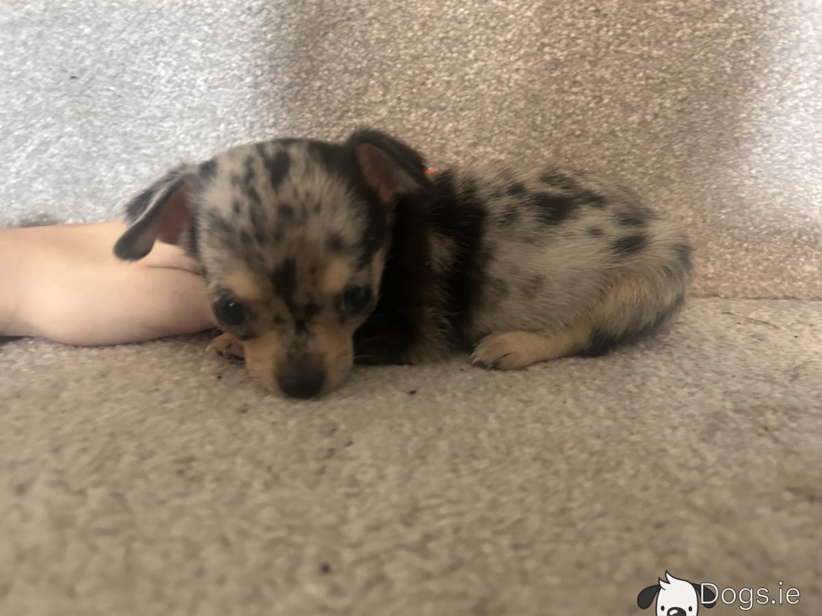 We have a charming male Chihuahua puppy available for sale, located in Carlow. This little one is predominantly black with white markings and has a gentle temperament, making him a wonderful companion for both families and individuals. He is fully vaccinated and has been wormed, ensuring he is healthy and ready for his new home.