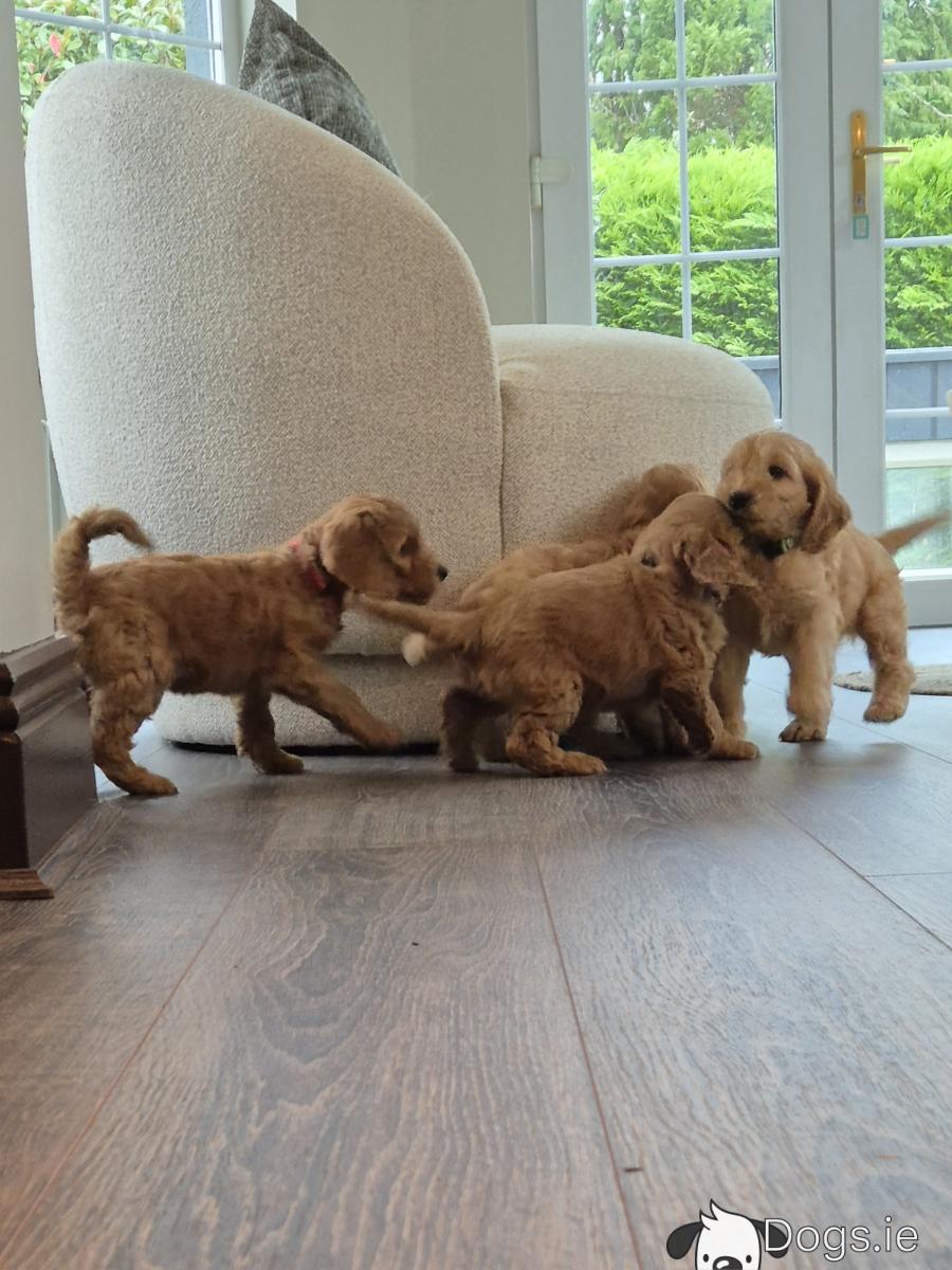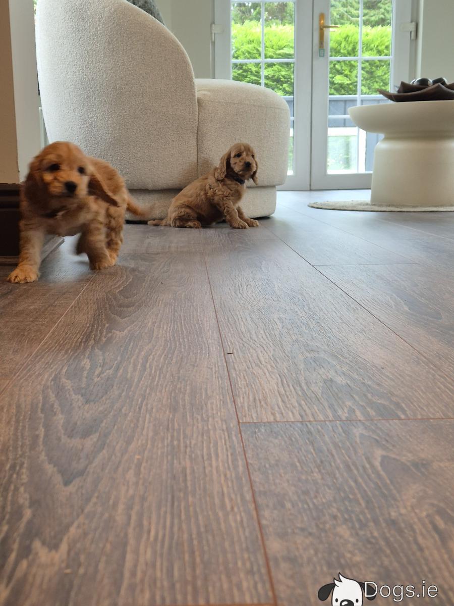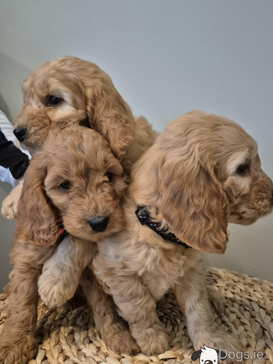 Beautiful litter of apricot & red, non shed, hypoallergenic Cockapoo puppies. Dad is an apricot miniature Poodle, Mum is a red Cocker Spaniel. Both are family dogs and can be seen with the puppies.