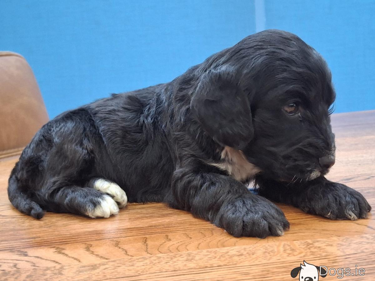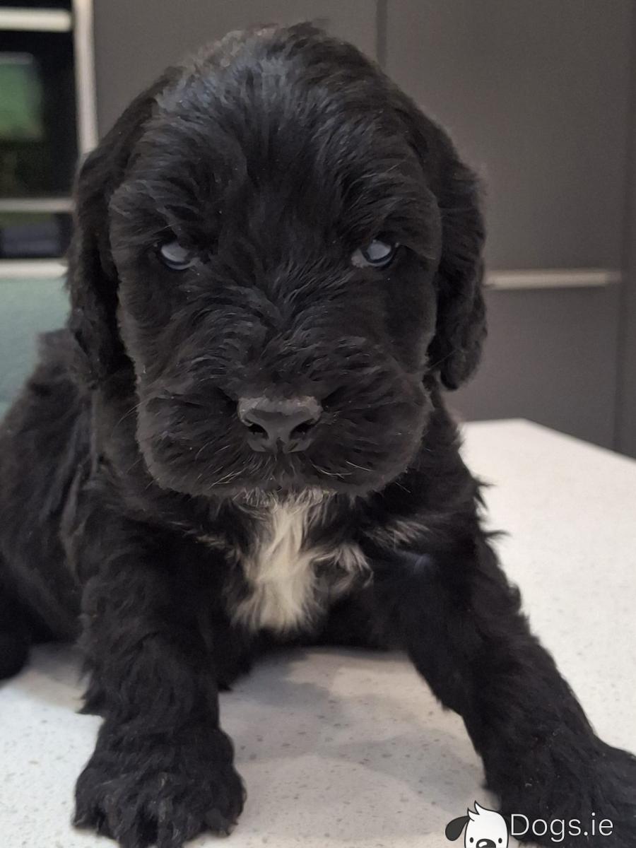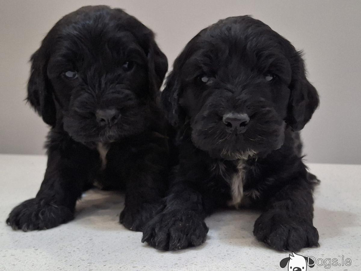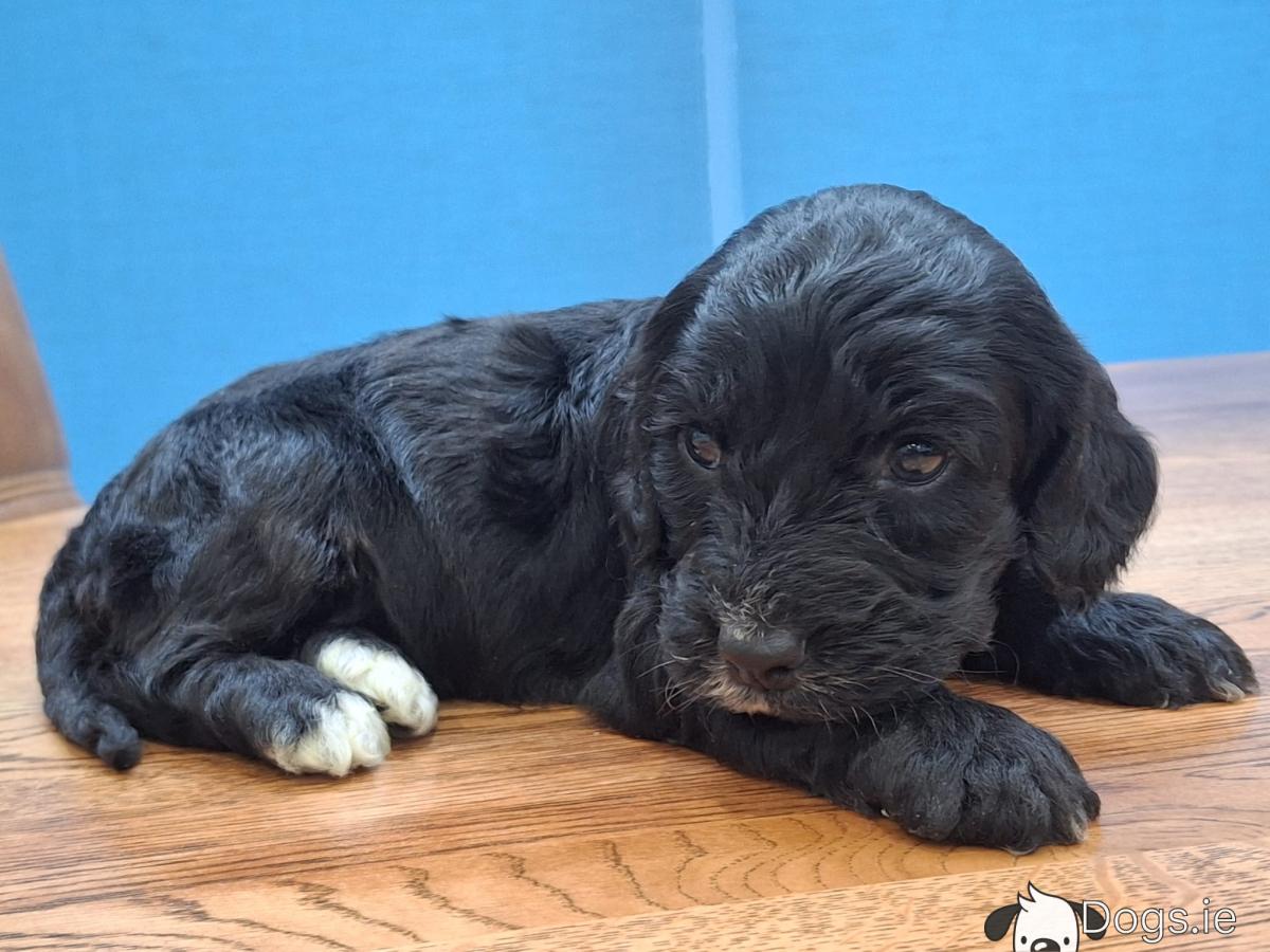 Mini black Cockapoos, Dad is miniature Poodle and Mum is a Cocker Spaniel, they are both family pets. These little guys have been microchipped, vaccinated, wormed and flea treated and will have all their certs. They have been reared in the family home and around children and are well socialised. They will have beautiful wavy curly coats and very affectionate temperaments. Please contact 0874088908 for more info.