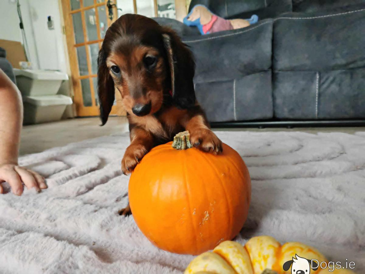 Our kennel is the only one in Ireland that sells kaninchen-sized long-haired dachshunds.