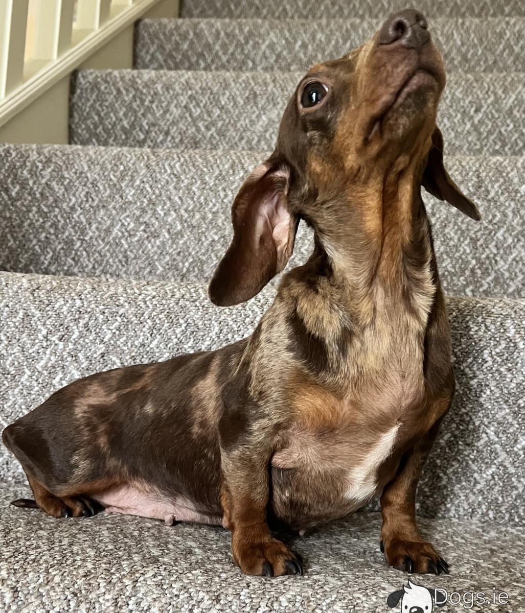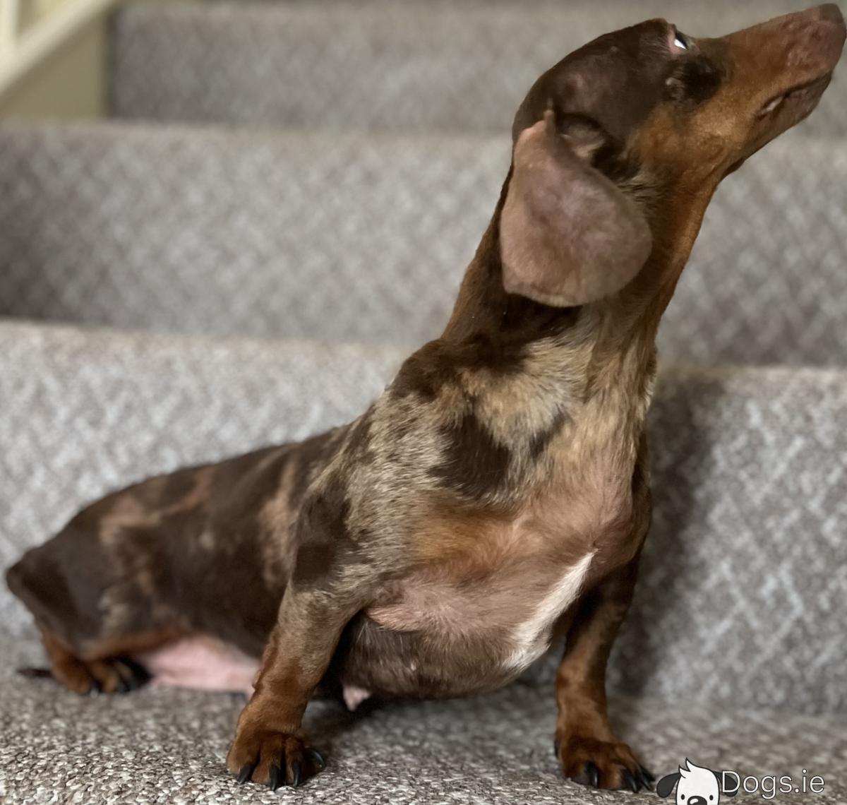 Foxxy is a Miniature Brown Dapple female Dachshund dog in Tyrone