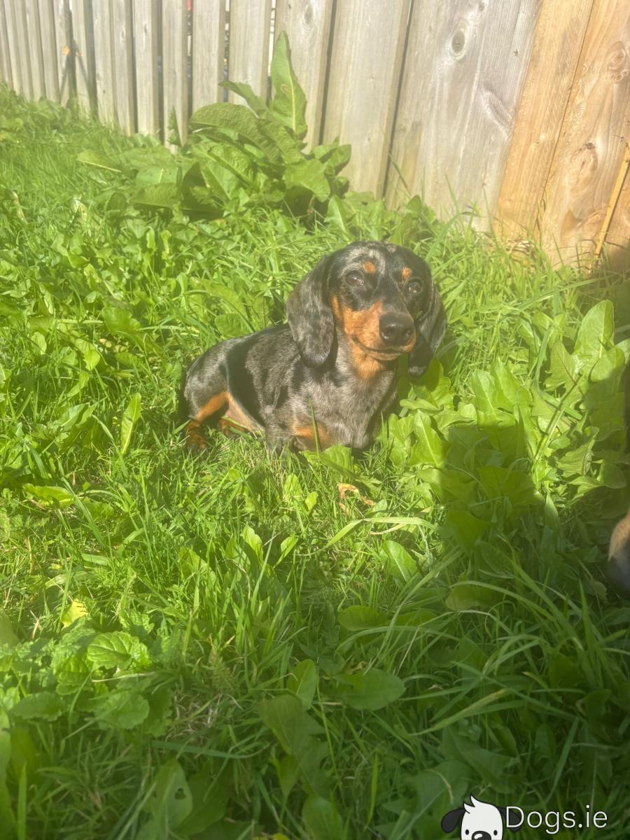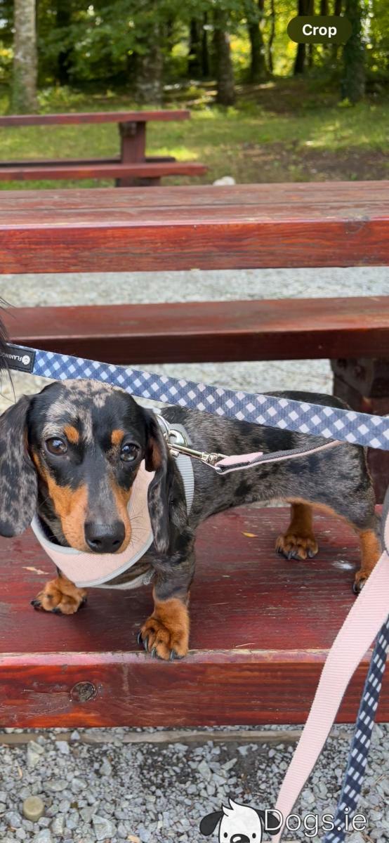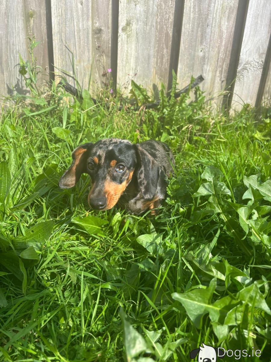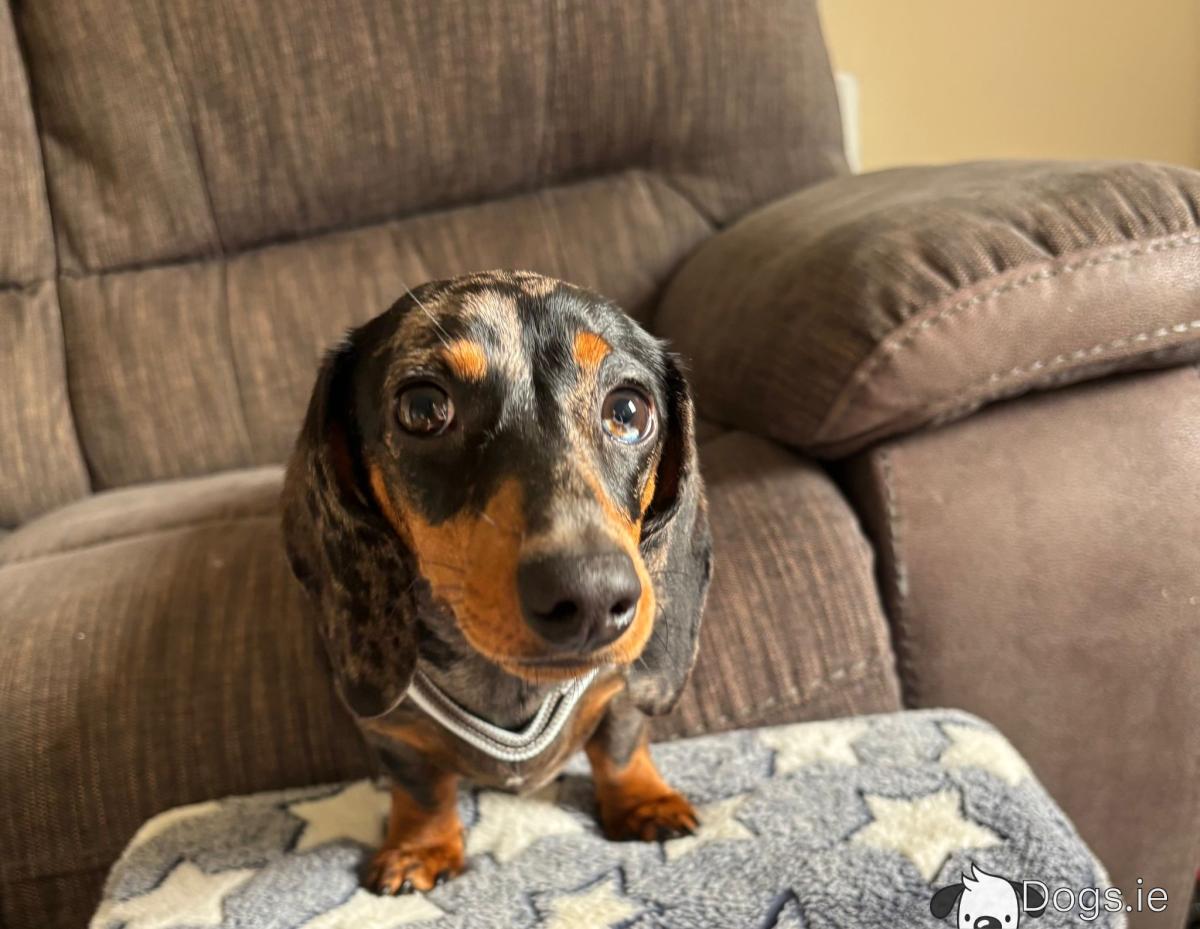 Beautiful Dapple Miniature Dachshund for sale. She is 9 months old. We are heartbroken to have to rehome her but unfortunately our baby is allergic to her. She is the sweetest puppy, her favourite thing to do is snuggle up on the couch. She is also very playful she loves to chase a ball around, and she is very gentle and good around kids. We want to make sure she gets the best home possible.