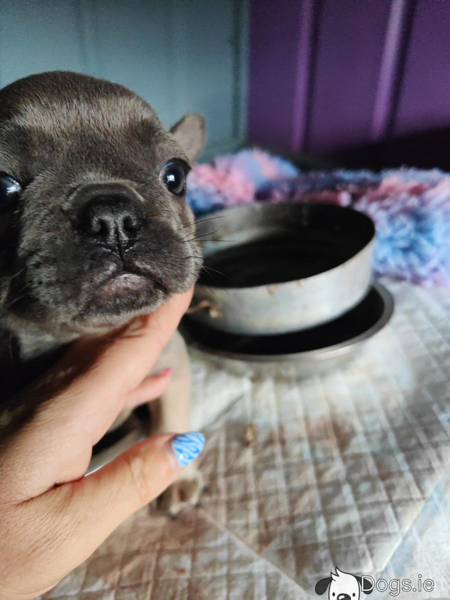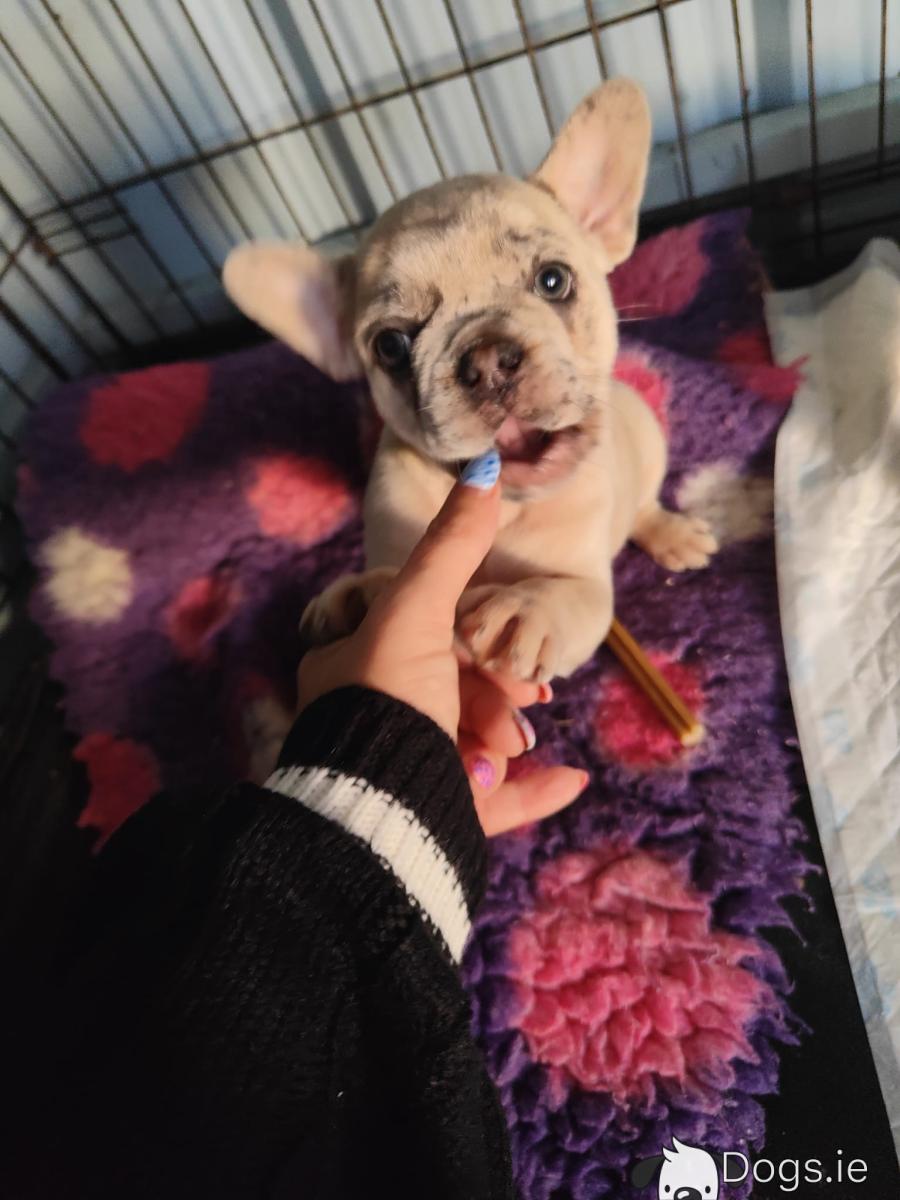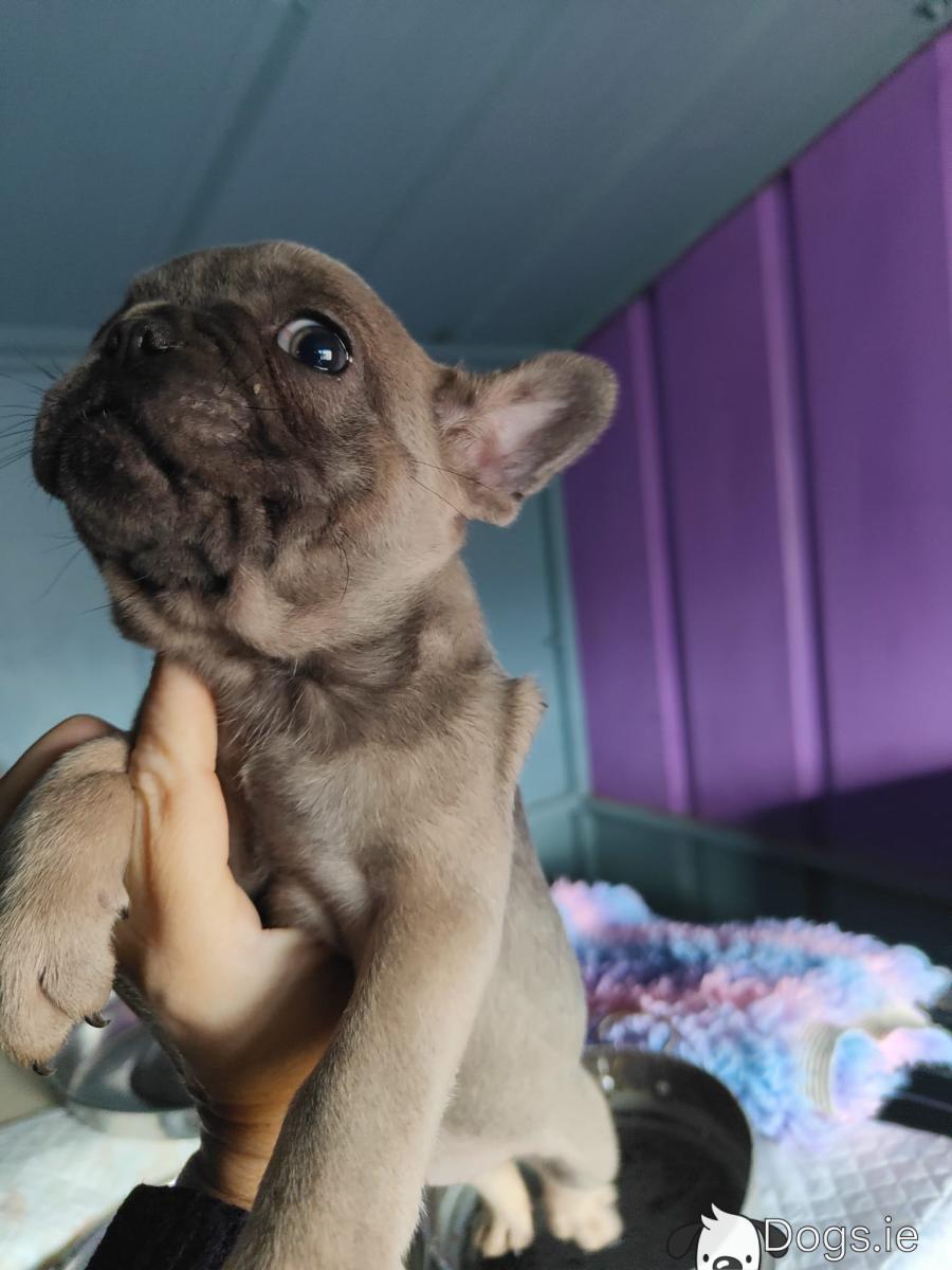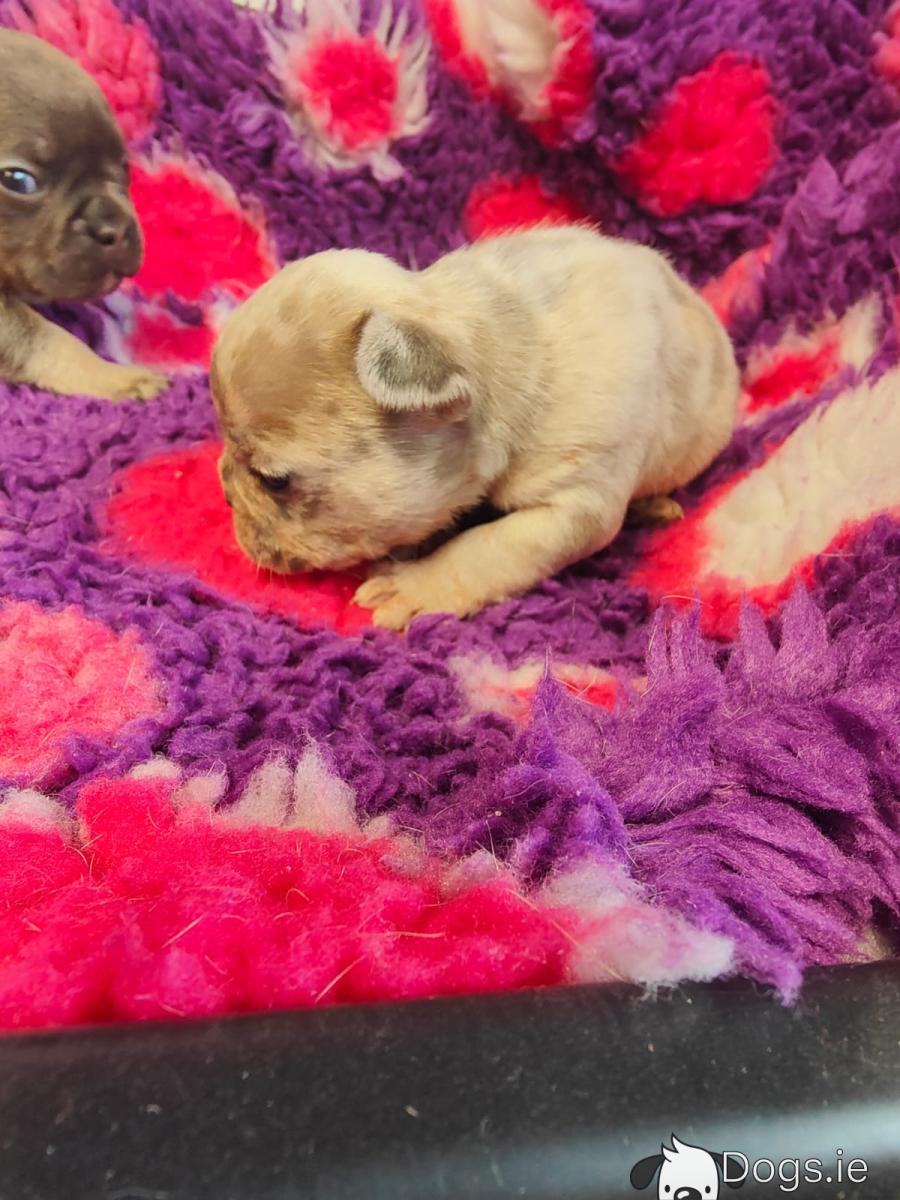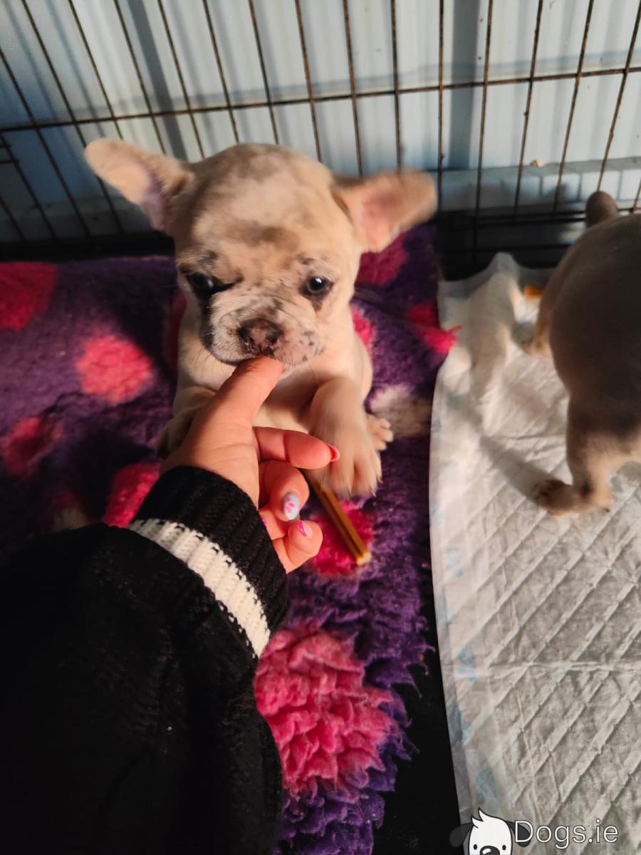 We are pleased to offer a beautiful female and male French Bulldog puppy, aged just a few months, available for sale in Bt343uf. These puppies boast a striking blue coat with unique Kerry, Merle, and Roan markings. Known for their fearless temperament, French Bulldogs are affectionate companions that thrive in family settings and adapt well to various living environments.