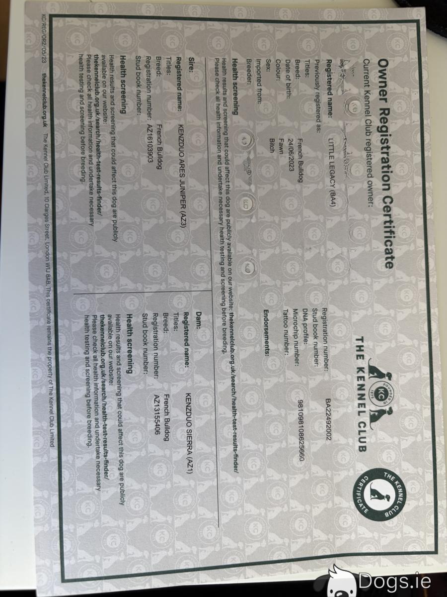 - Note microchip IDs posted here (981098108625660) and check the microchip certificates (important) when you visit to make sure they match and the sellers details are on the certificate too (see example microchip certificates).
