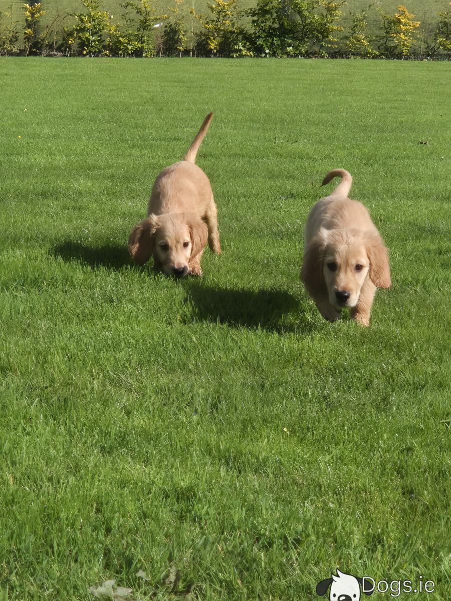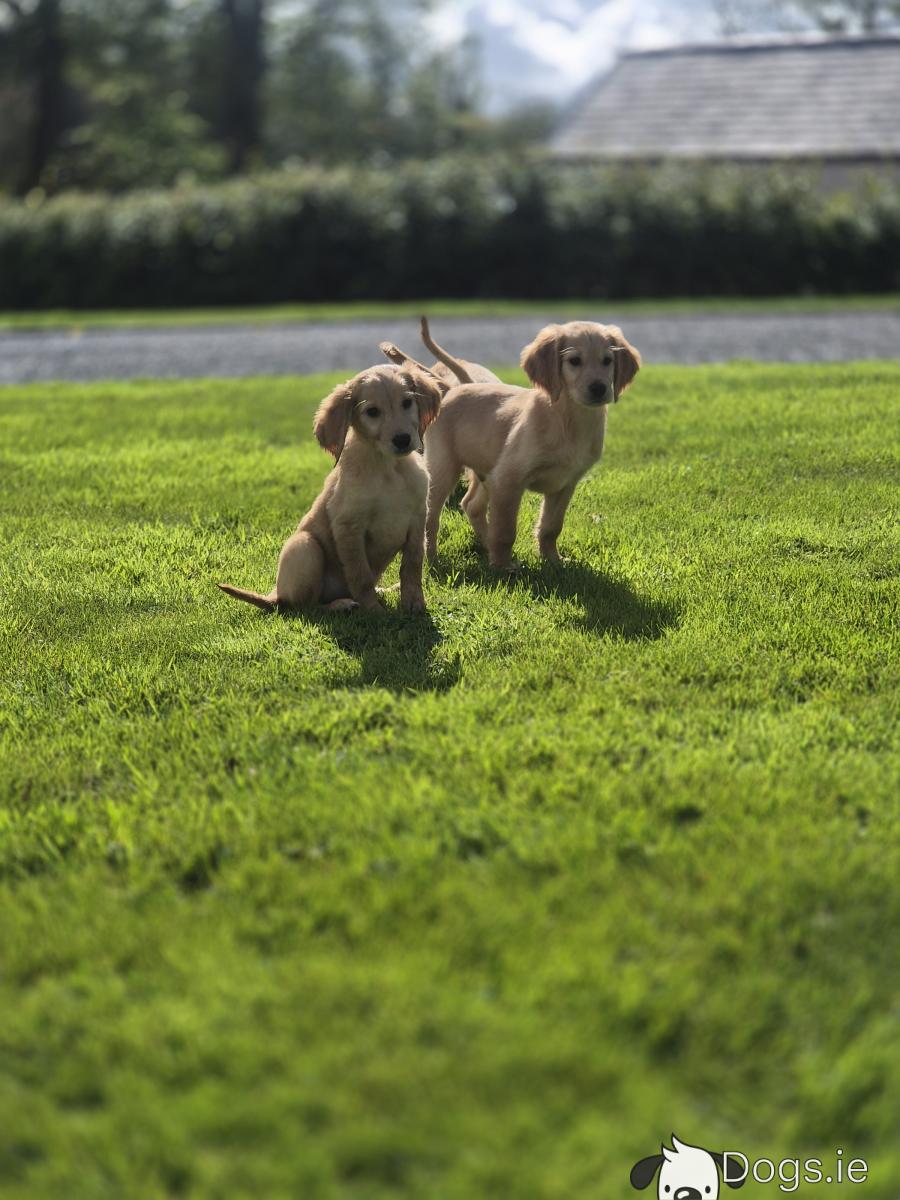 We have a delightful litter of Golden Golden Irish Setter puppies available for sale in Limerick. These puppies, a female and a male, are just over two months old and are already showing their affectionate nature. Both parents come from exceptional bloodlines, ensuring that these pups inherit the best traits of the breed.