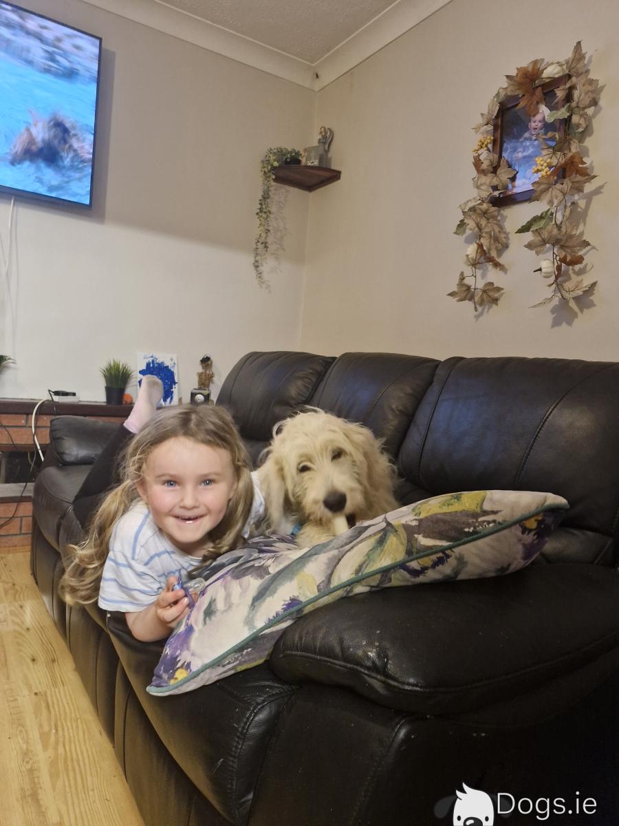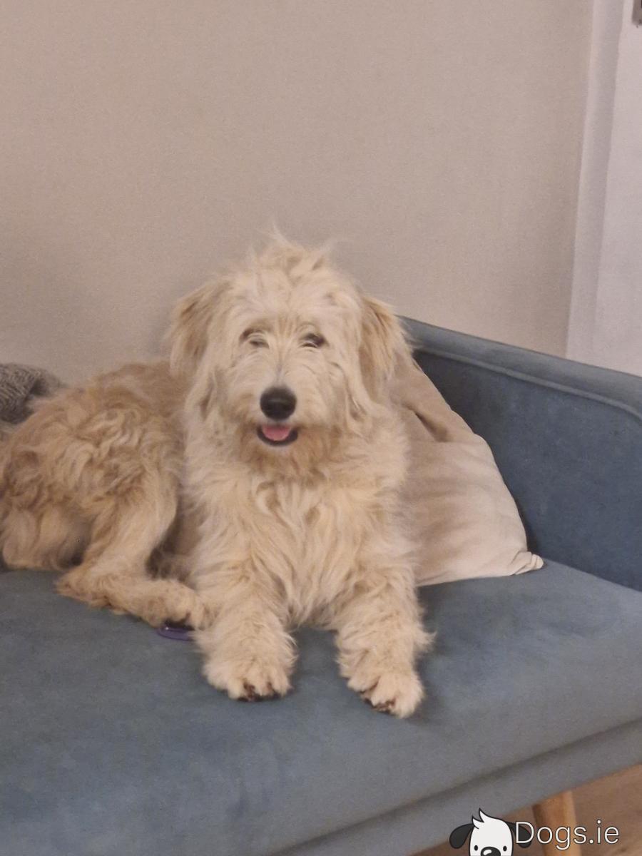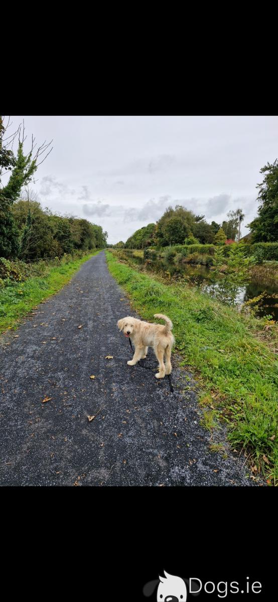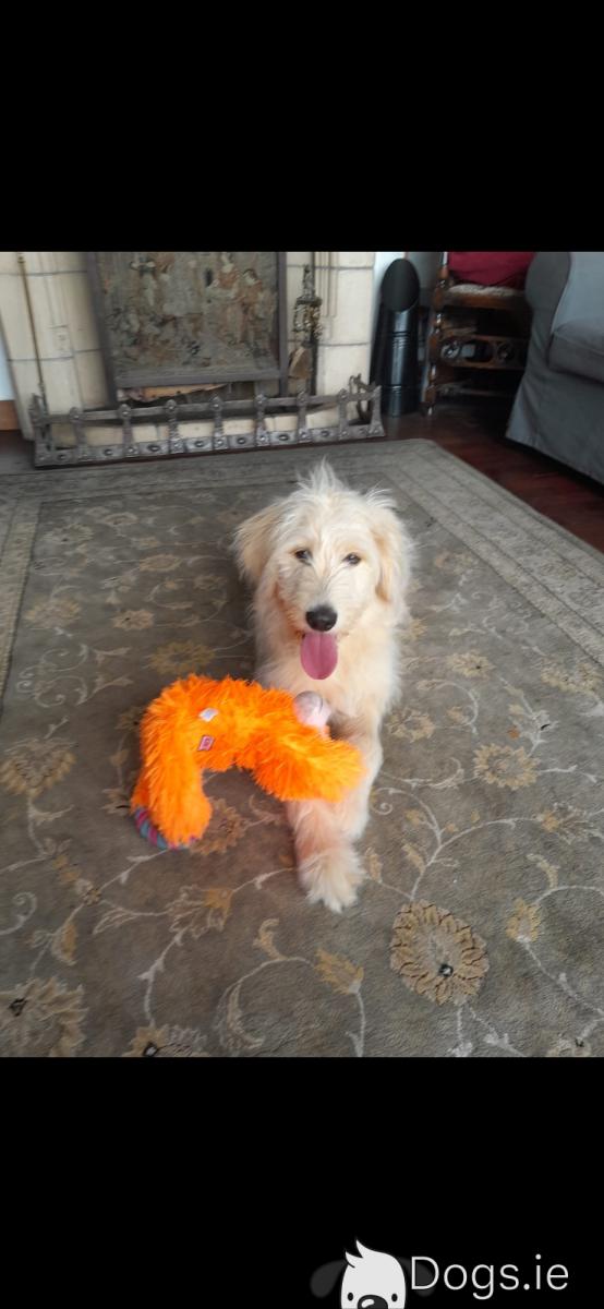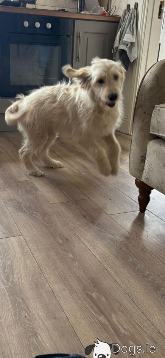 We have a lovely female Goldendoodle puppy available for sale in Kilbeggan Co. Westmeath. Born in March 2025, she is currently 8 months old and is a cream-coloured bundle of joy. This breed is known for its friendly and intelligent nature, making them excellent companions for families and individuals alike. Goldendoodles typically exhibit a playful and active temperament, which means they thrive in environments where they can engage in regular exercise and mental stimulation.