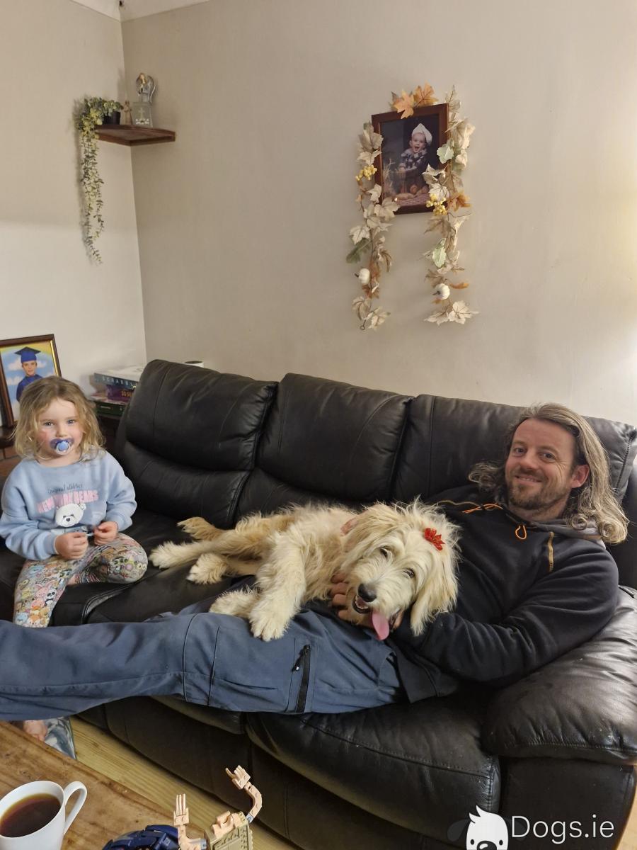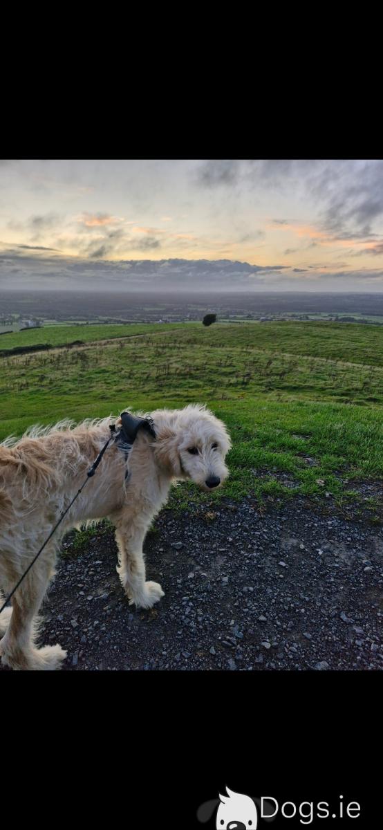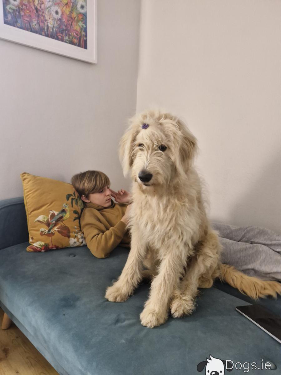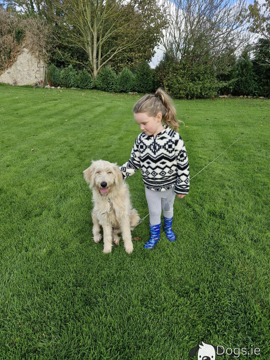 We have a lovely female Goldendoodle puppy available for sale in Kilbeggan Co. Westmeath. Born in March 2025, she is currently 8 months old and is a cream-coloured bundle of joy. This breed is known for its friendly and intelligent nature, making them excellent companions for families and individuals alike. Goldendoodles typically exhibit a playful and active temperament, which means they thrive in environments where they can engage in regular exercise and mental stimulation.