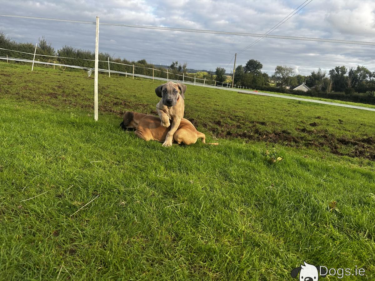 We have 4 Great Dane puppies available for sale, consisting of 2 males and 2 females. These affectionate puppies will be ready for their new homes from the 16th of September. Both parents are cherished family pets.