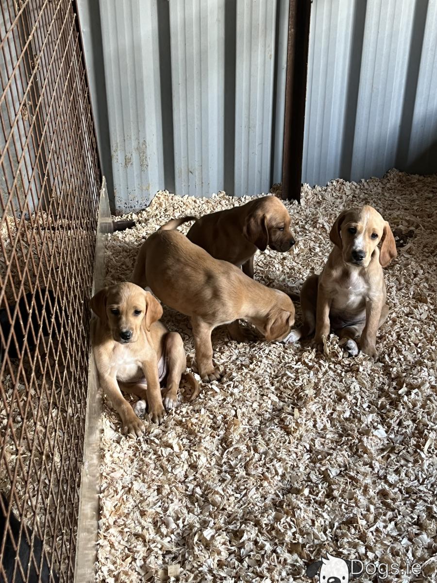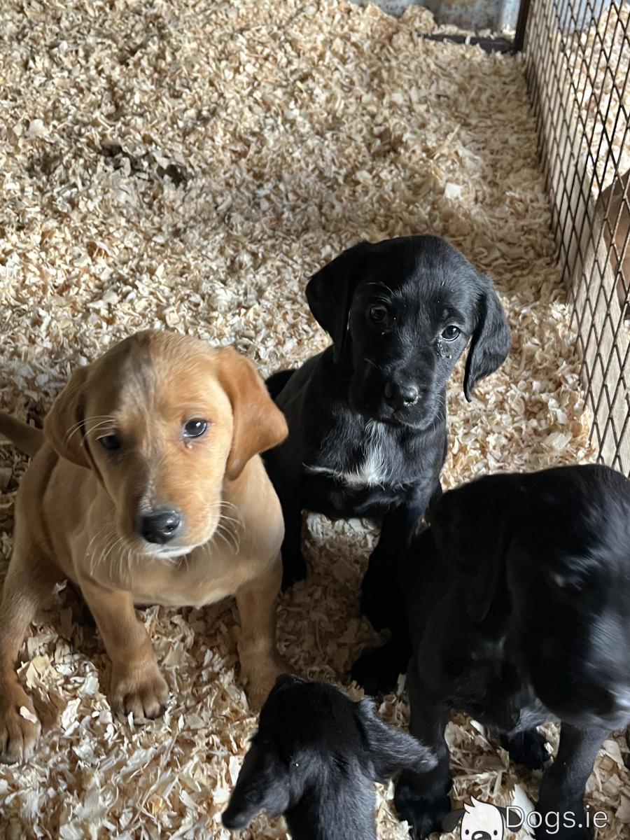 9 friendly and energetic Irish Red Setter x Labrador puppies looking for a loving home. The mother is a black Labrador and the father is a Red Setter both of which are good gun dogs and also very friendly house pets. Easy to train dogs as they have a good temperament. Good with children and other dogs.