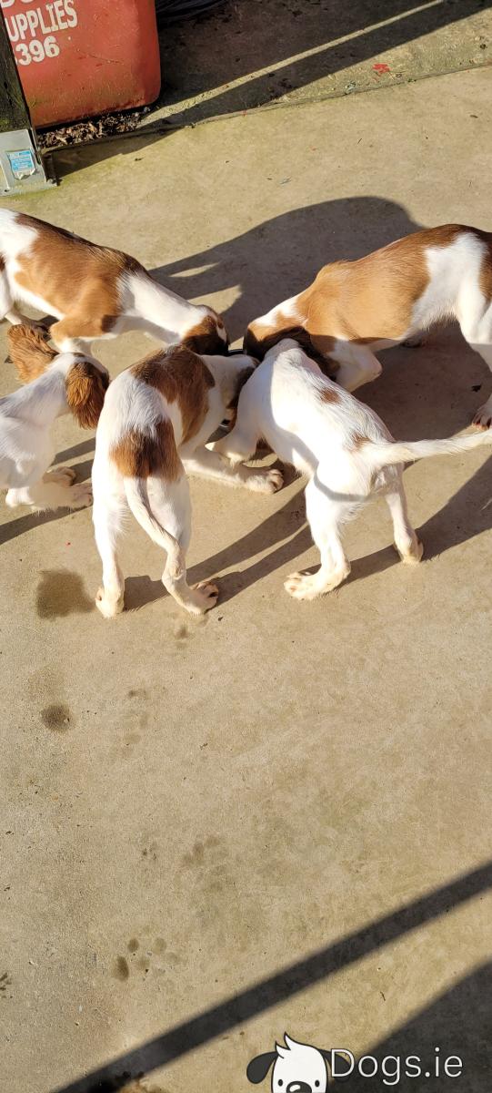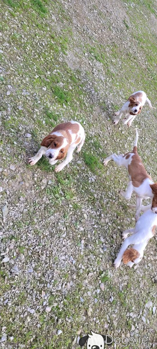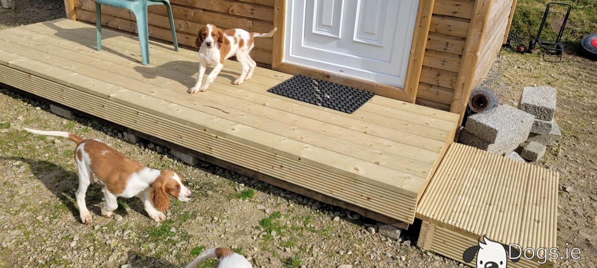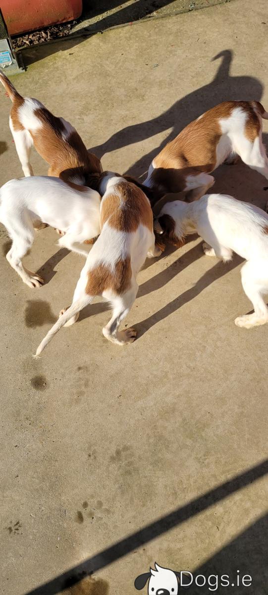 Excellent litter of Irish Red and White Setter puppies. 5 males available. They are friendly, affectionate and energetic. Extremely well bred. They will make excellent family companions or working dogs.