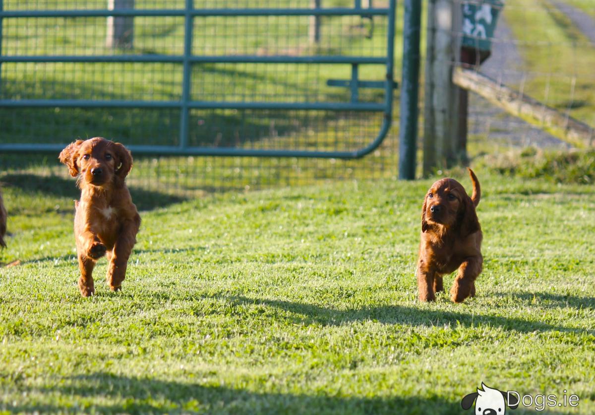 We have two beautiful female Irish Setter puppies available for sale. These puppies are currently just over two months old and are full of energy and enthusiasm. Known for their striking red coats and friendly disposition, Irish Setters are an active breed that thrives on companionship and exercise. They are intelligent and eager to please, making them excellent family pets and companions for those who enjoy an active lifestyle.