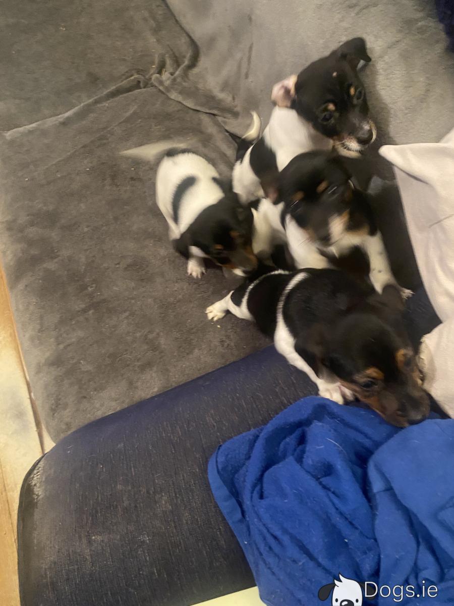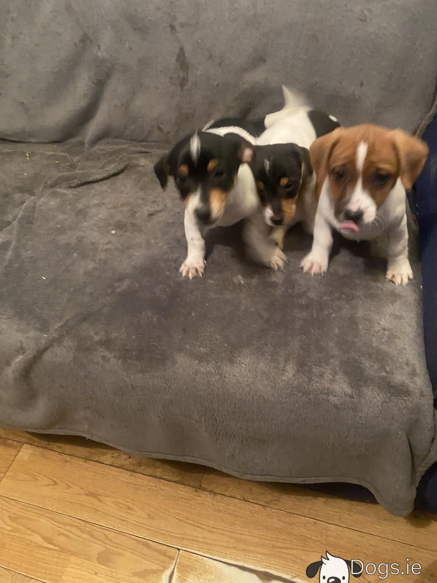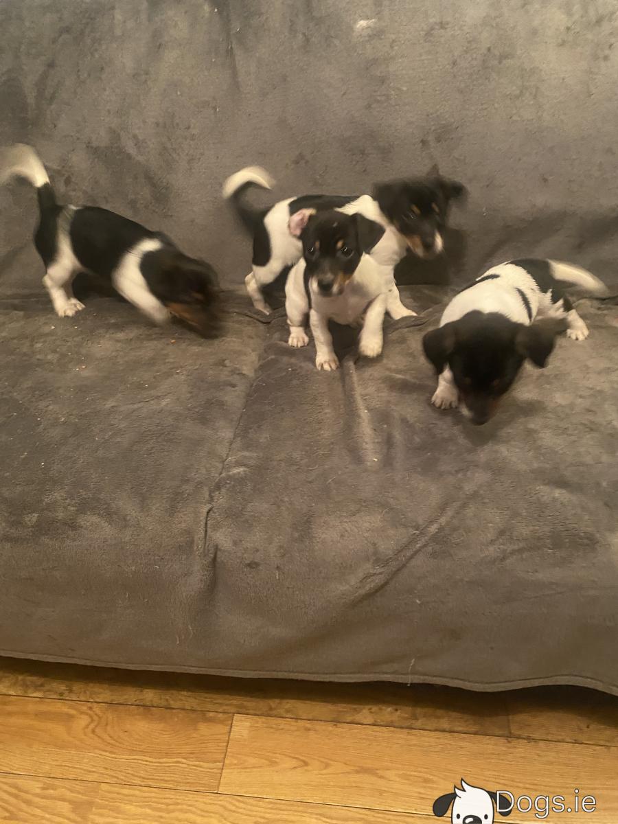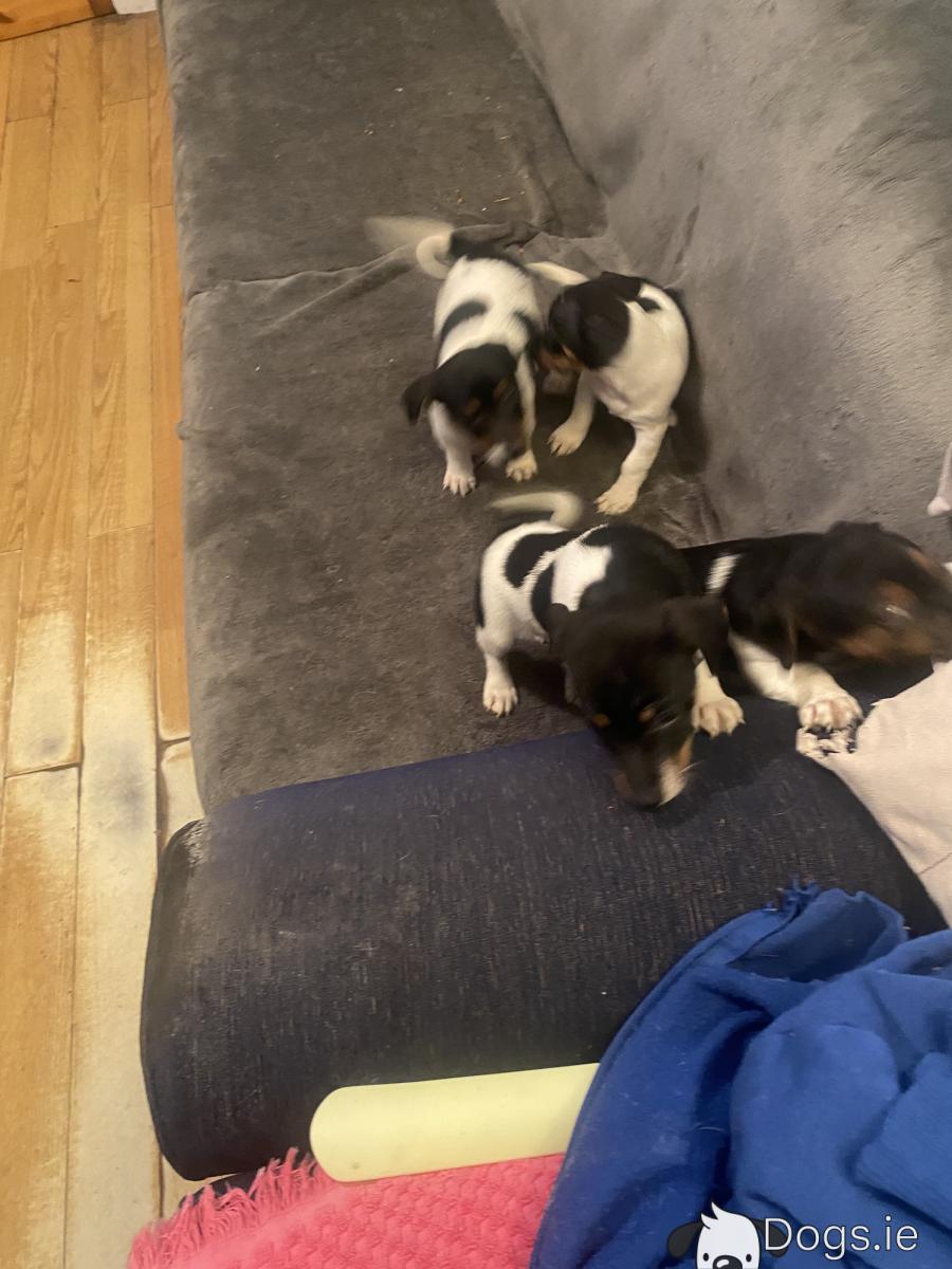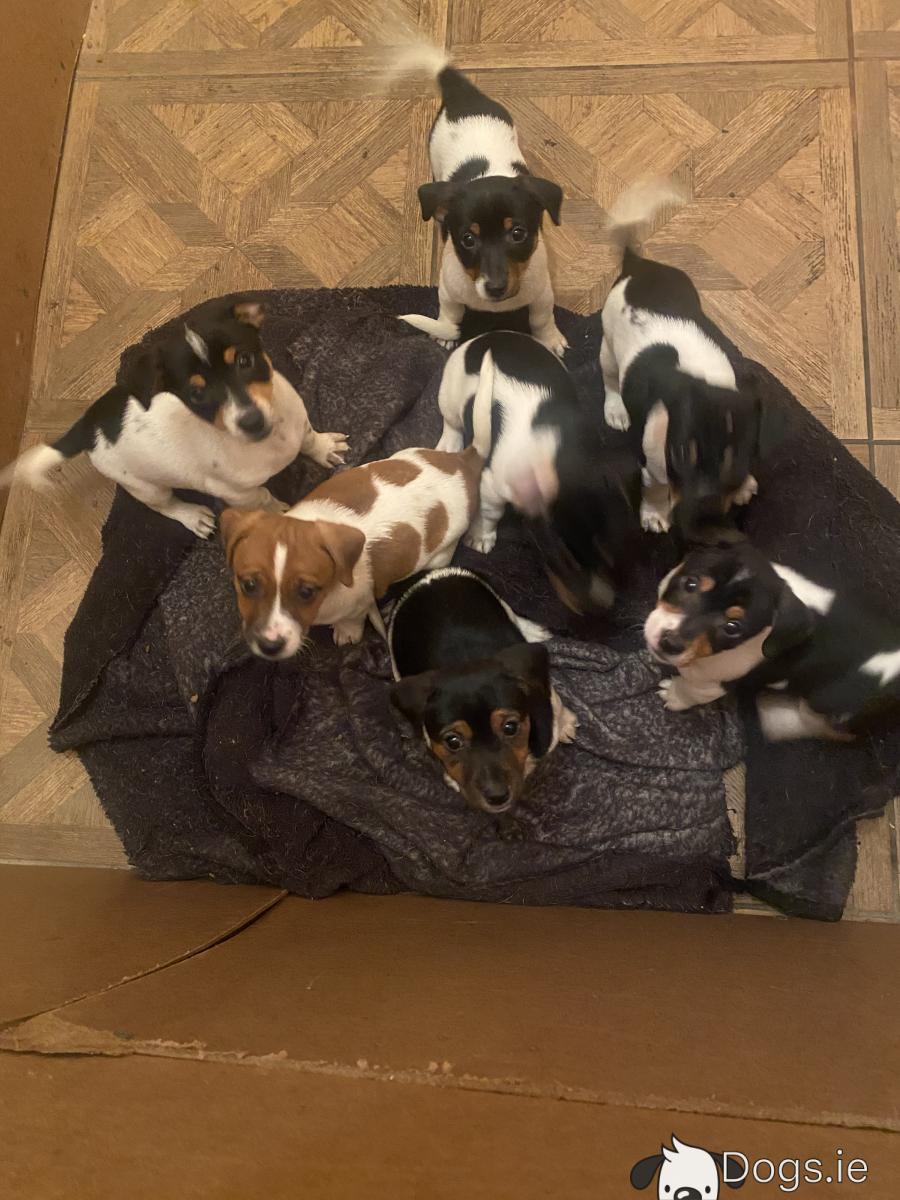 I have 7 beautiful Jack Russell puppies available 3 males and 4 females available.They are very nicely patterned and are mostly tri coloured black brown and white in colour. They have had their first vaccination and are microchiped and have been wormed at 2-5 and 8 weeks and have been health checked by my vet.They are eating tinned food and nuts and drinking water and are weaned. Would be very suitable for a family with children they are very friendly and playful puppies.Parents can be seen i am registered with the department of agriculture and my registration number is HPT+441481200023C.They are lovely puppies and must go to good homes and careing people contact John on +353871484345 by phone text or WhatsApp no time wasters please thanks john.