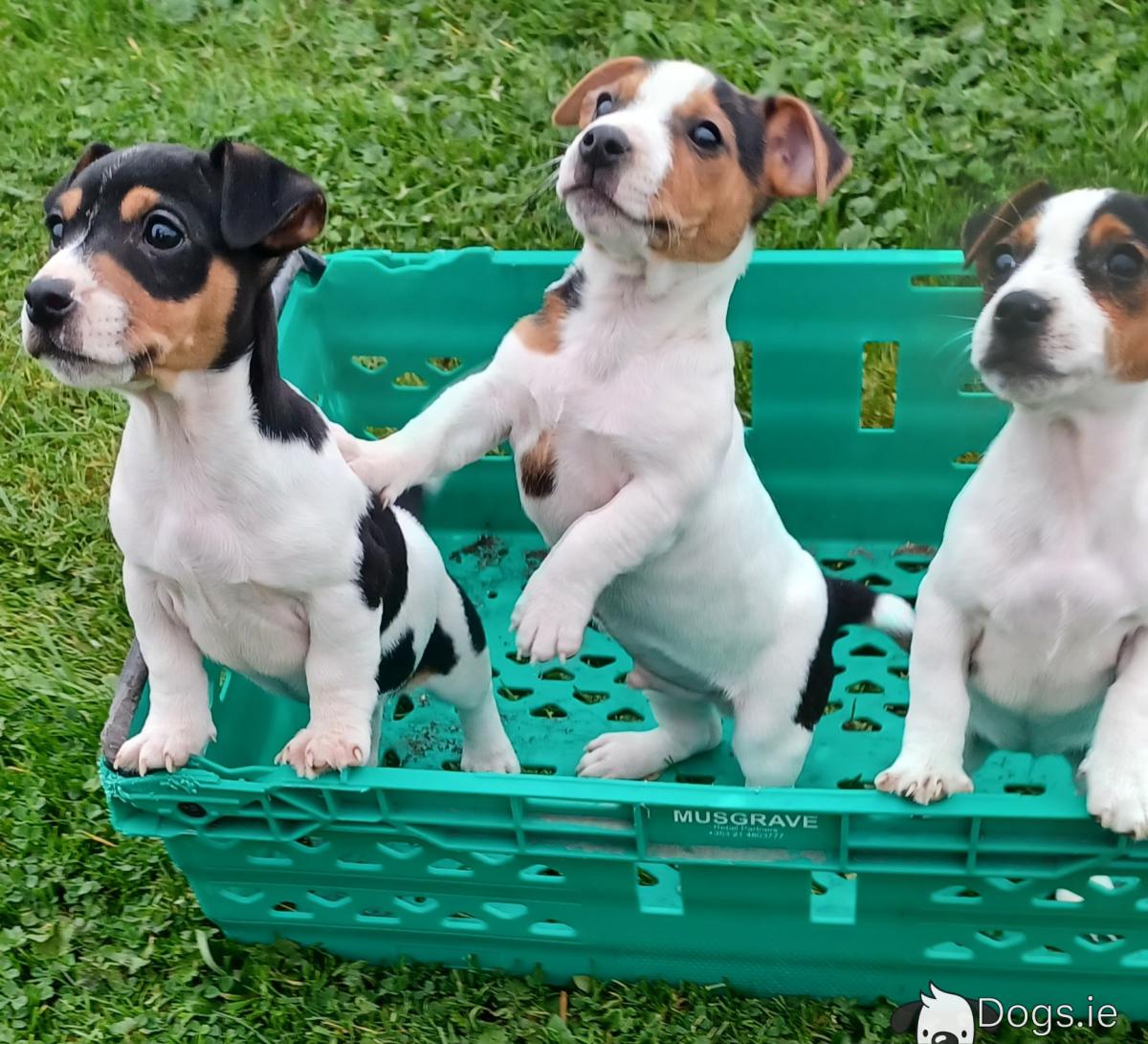 We have a delightful litter of Jack Russell puppies available for sale, located close to Carrick on Shannon, Co Leitrim. These puppies, born on 7th August 2025, are now just over two months old and are ready to find their forever homes. We currently have one female and two male tricolour puppies, each displaying a beautiful mix of brown, black, and white. All puppies have been vaccinated and wormed, ensuring they are healthy and ready for their new adventures.