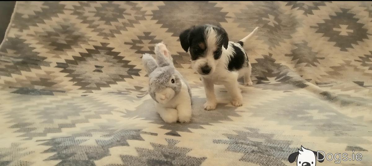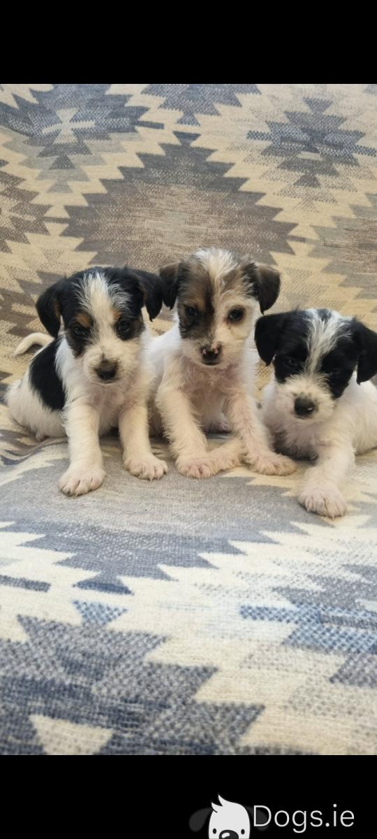 My puppies are a charming mix of Jack Russell and Poodle, known for their affectionate nature and intelligence.