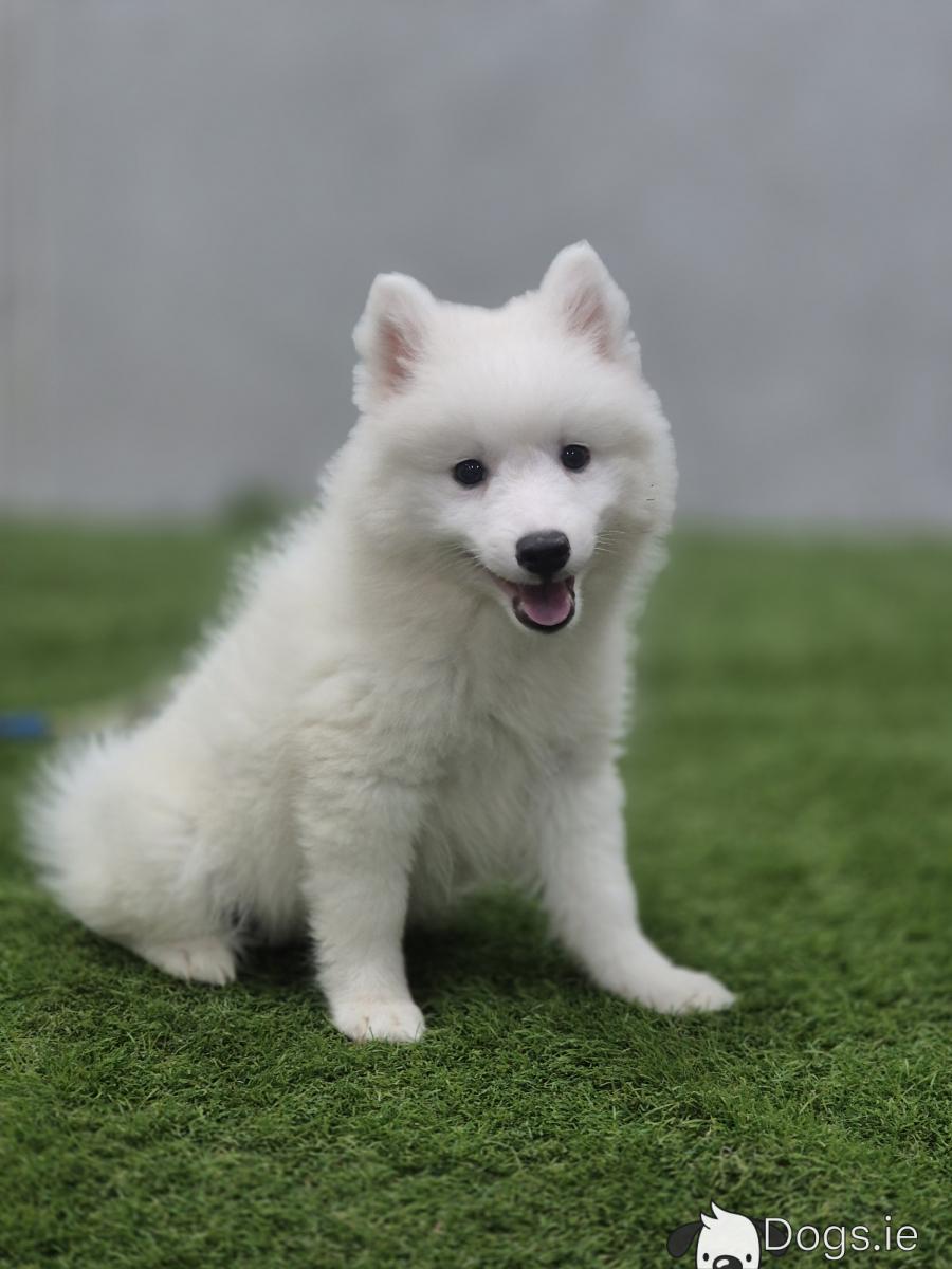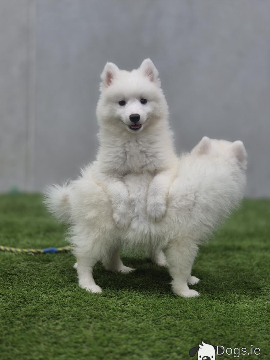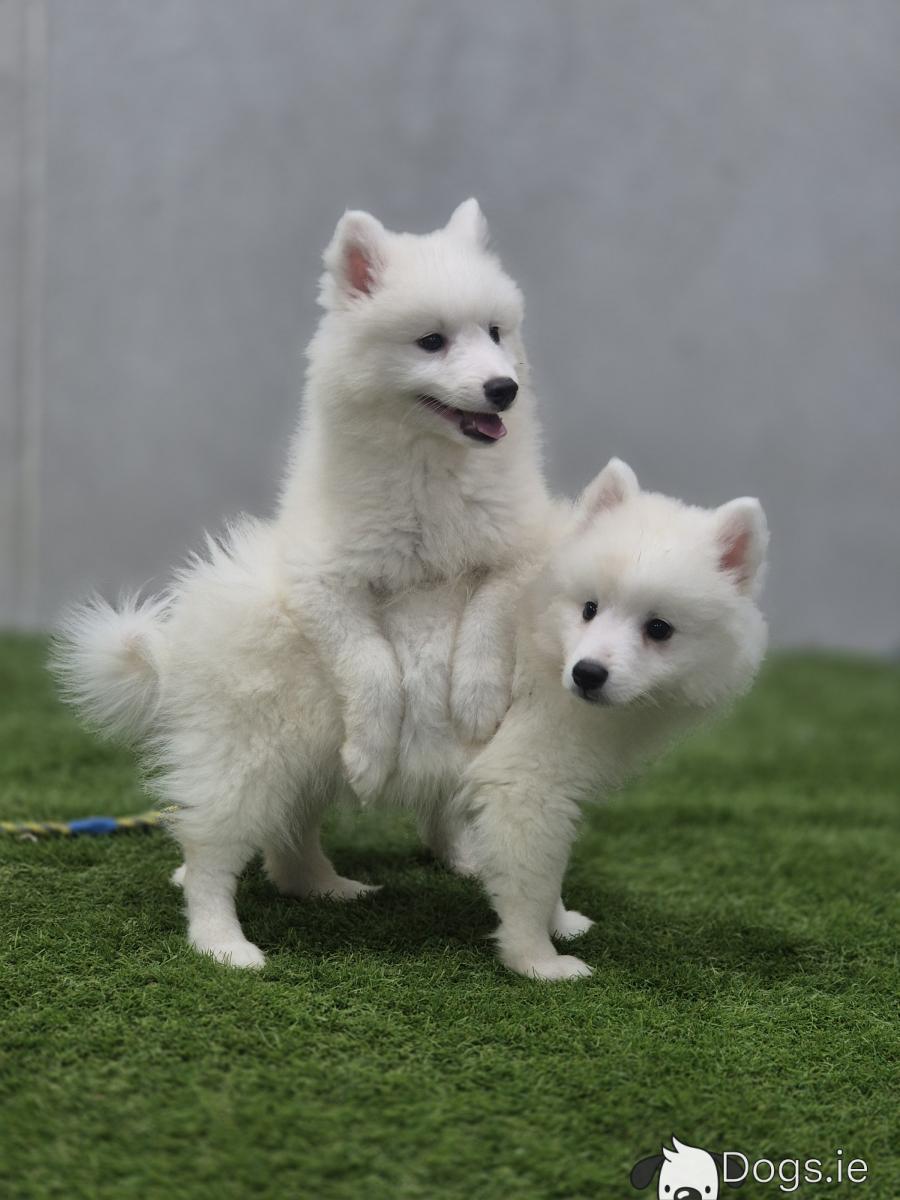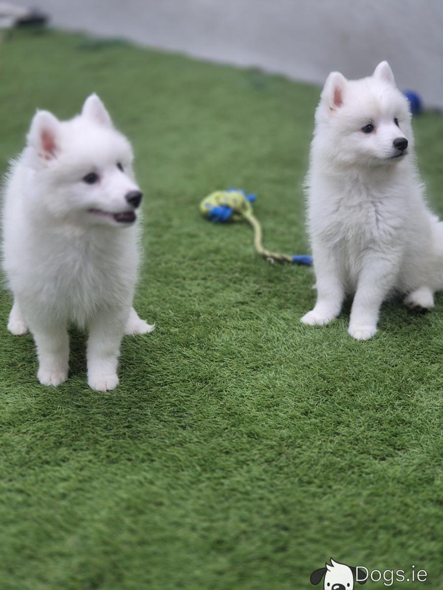 We are pleased to offer two stunning Japanese Spitz puppies for sale, one male and one female, located in Limerick. These puppies are currently just over 2 months old, displaying the affectionate temperament characteristic of the breed. Both are very healthy and happy, having been raised in a family environment with children, ensuring they are well-socialised and accustomed to a lively household.