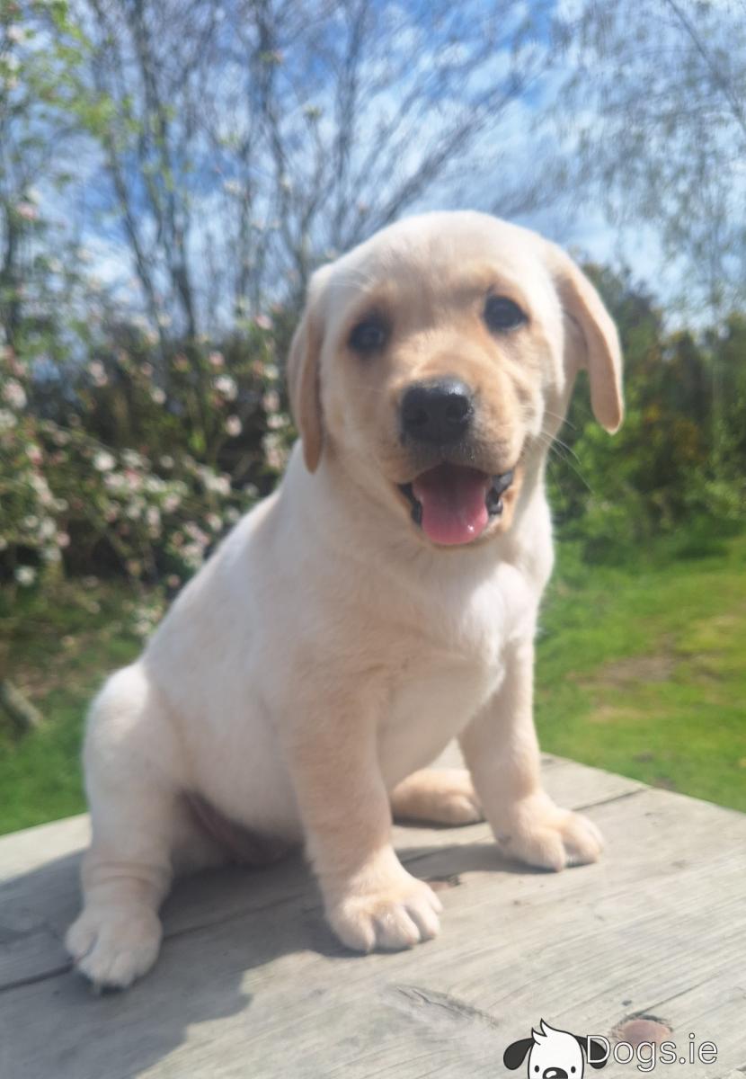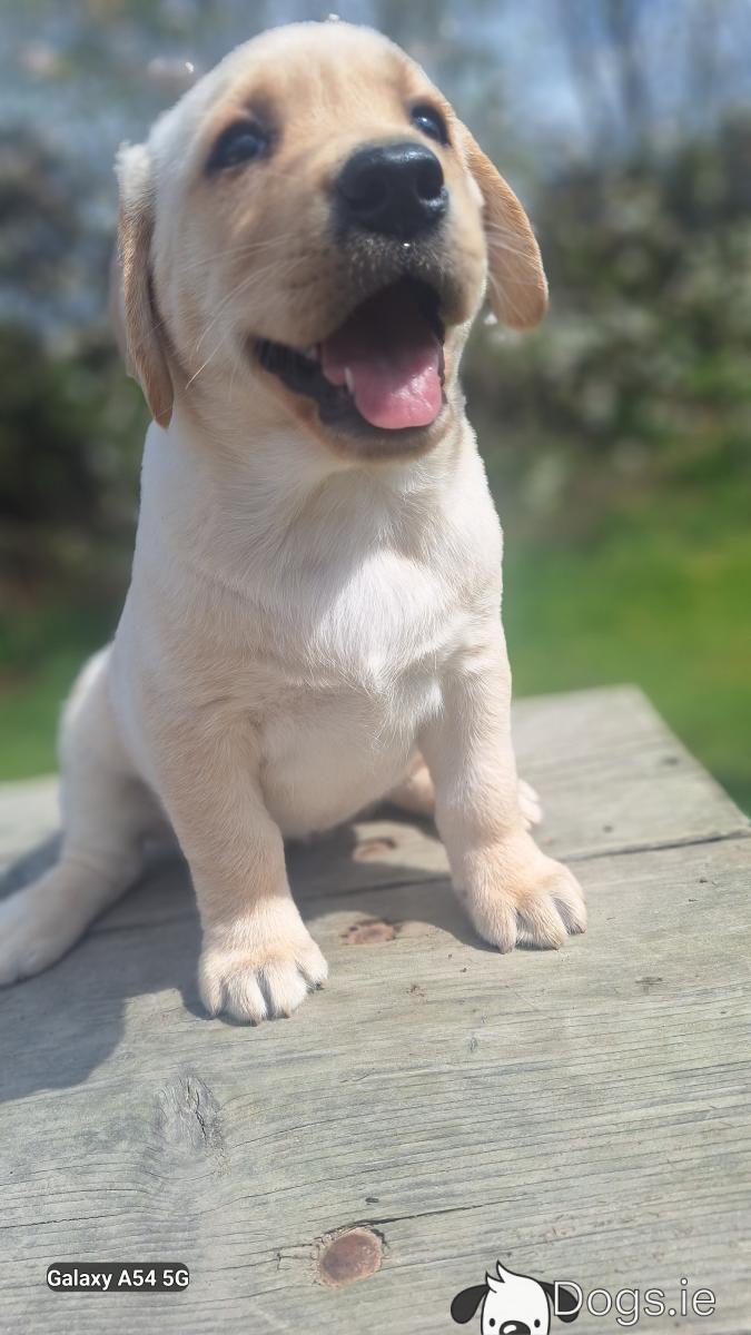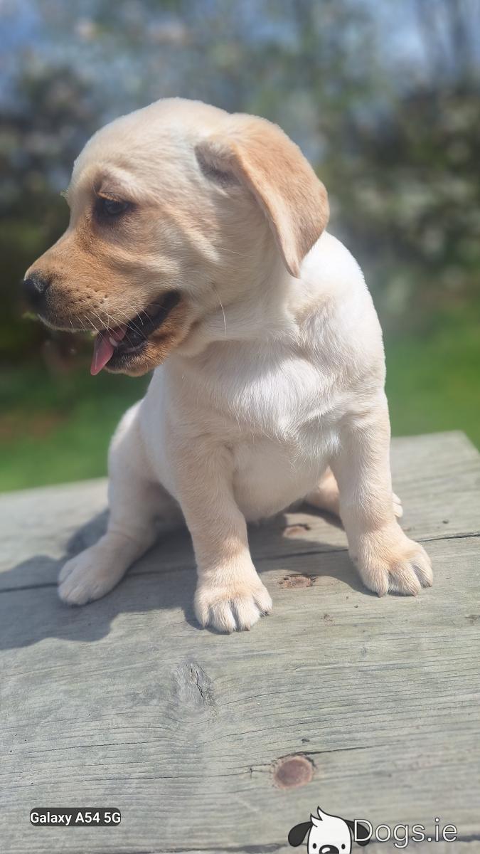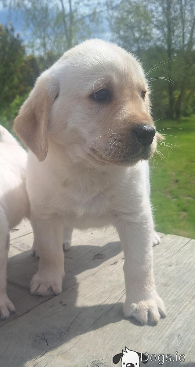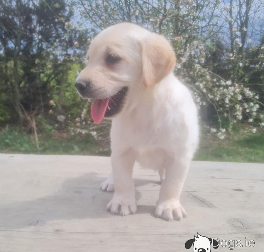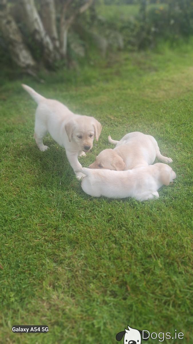 Hi , we got a beautiful litter of Golden Labradors available here today, both parents can be seen and are both our family pets. Puppies are vaccinated, microchipped, wormed, defleaed, vet checked and will come with a puppy pack and all necessary paperwork. Please call me on +353894009545 or WhatsApp me for any other information. Amazing big strong and chunky puppy's