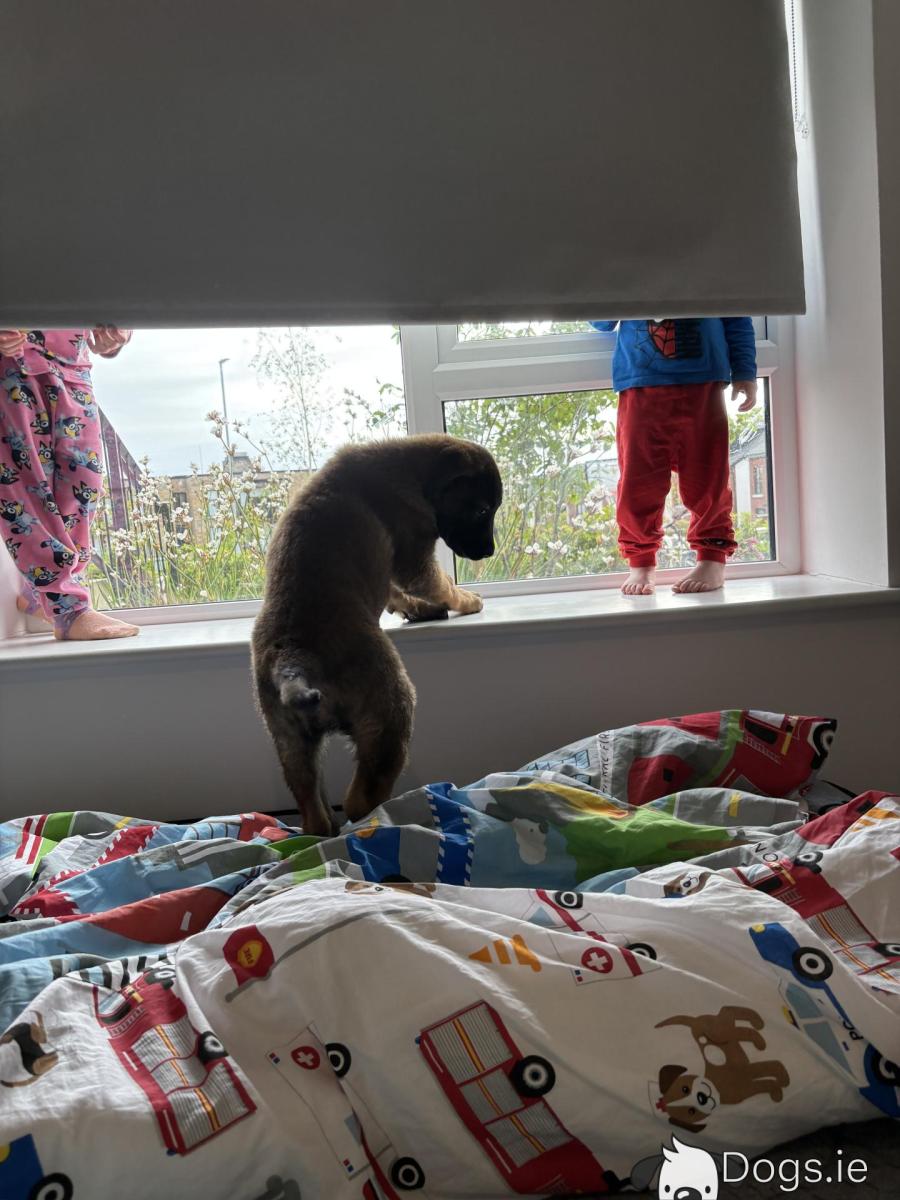 We have a lovely Leonberger x Belgiun Malinois for sale. Fraya is 10 months now so still growing. She gets on well with the kids and has been in doggy day care every day with other dogs. She can sit, give the paw, lie down and stay! Nearly sure she is from the only litter of this breed in the country.