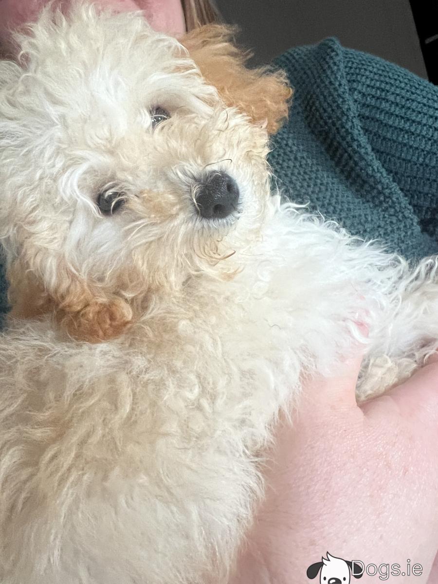 Available for sale is a delightful female cream Poodle puppy, currently just over four months old. She is adorable and small in stature.