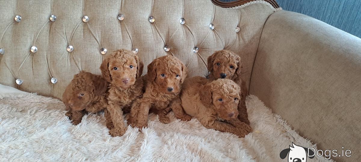 We have a delightful litter of miniature poodle puppies available for sale in Dromore. These puppies are friendly and well-socialised, making them excellent companions for families or individuals. There are three male and two females, each with a charming personality and a playful disposition. All puppies are vaccinated and wormed, ensuring they are healthy and ready to join their new homes.