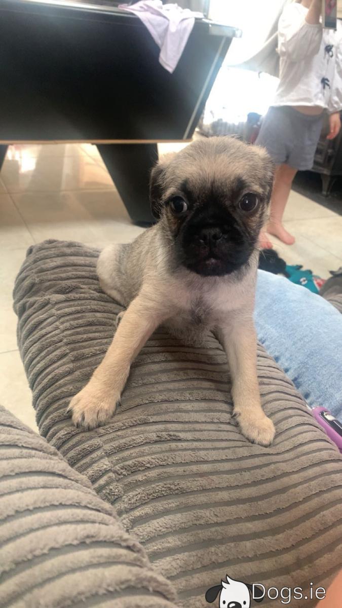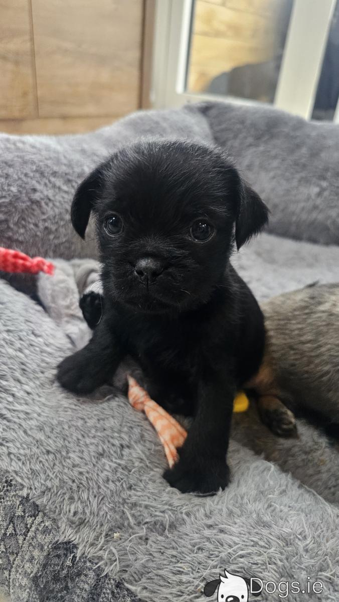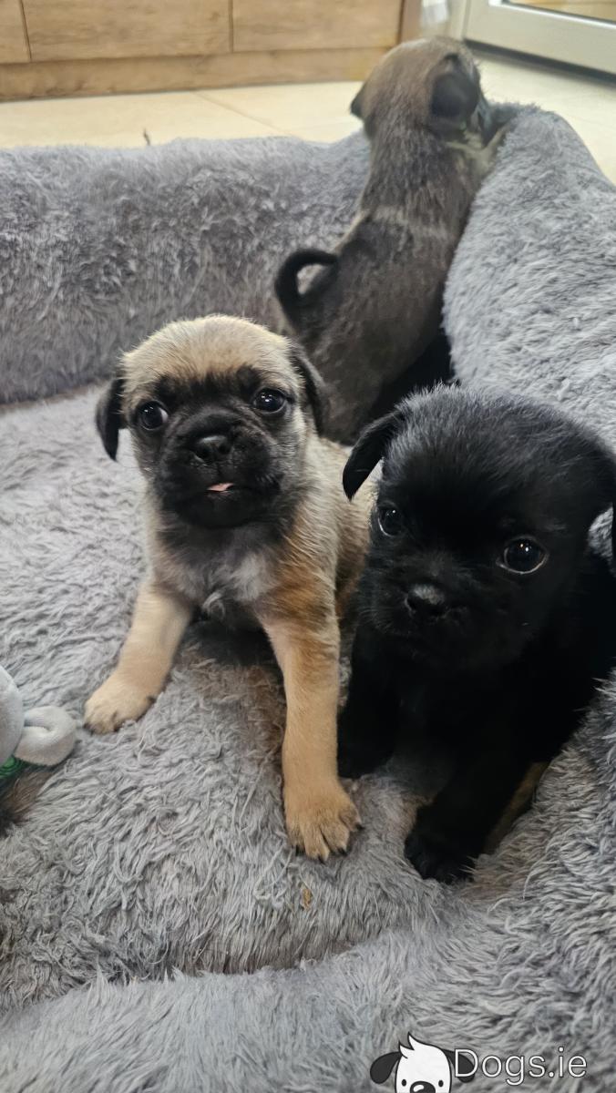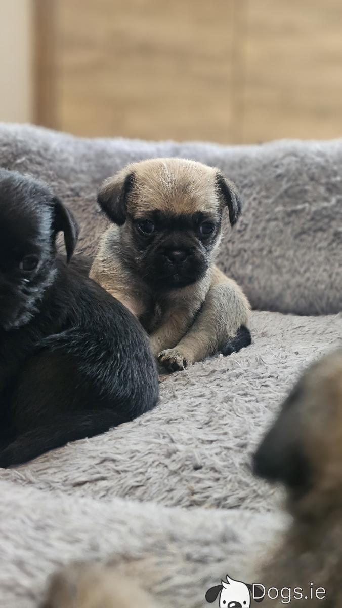 We have a delightful litter of 3/4 Pug and 1/4 Australian Terrier puppies available for sale in Tralee. At just 1.5 months old, these puppies are full of energy and curiosity, making them perfect companions for families or individuals looking for a loving addition to their home, they have been with children since birth. Each puppy has had their first vaccination and is ready to embark on their new adventures with their forever families. They got a health check with the vet and are in perfect health.