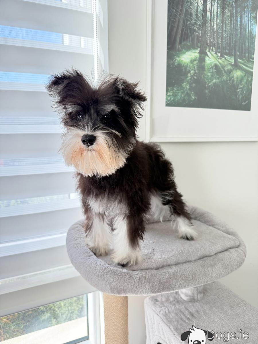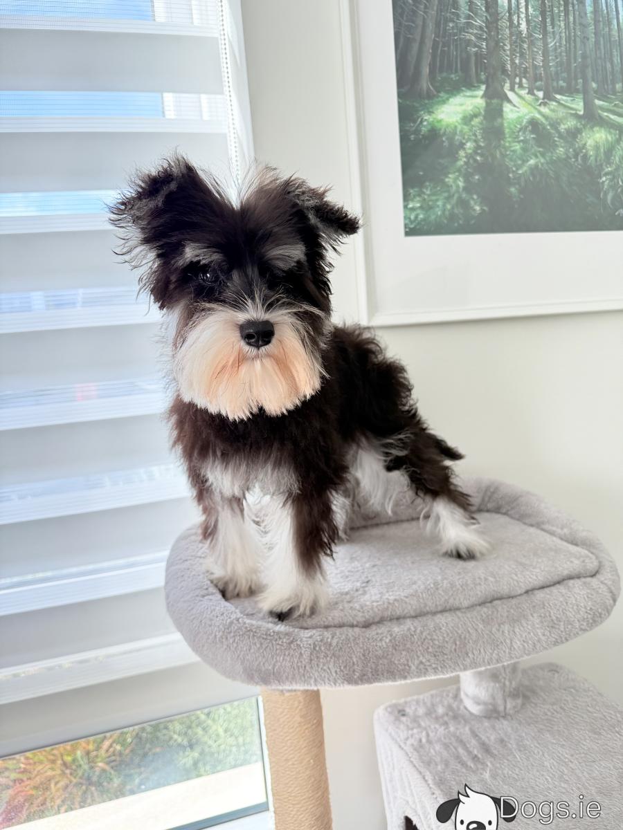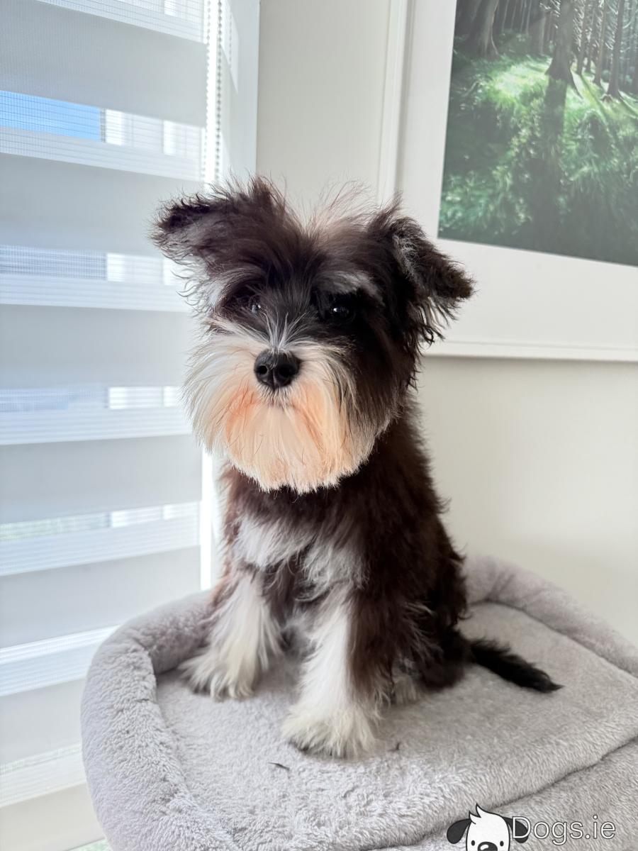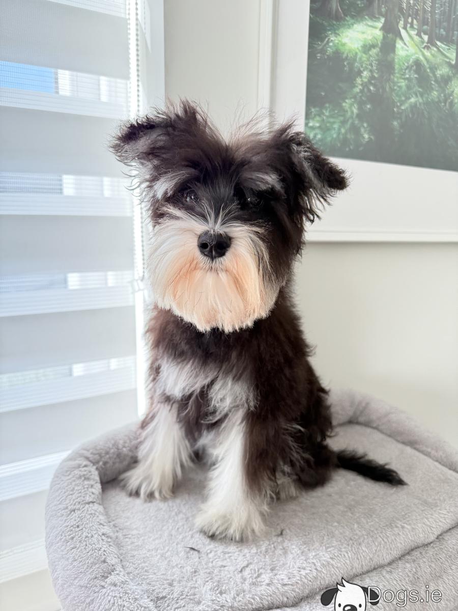 We are pleased to offer a selection of lively Schnauzer puppies with champion bloodline for sale, all under 5 months old. Located in Greystones, we have four male puppies available, featuring striking colours such as Black/White and Salt/Pepper. The Sire Tyzer of those puppies are two time world champion. The Dam is our family pet and is also a champion bloodline of Alan the Junior Irish Champion. These puppies are very friendly and have been well socialised, making them ideal companions for families or individuals looking for an affectionate pet.