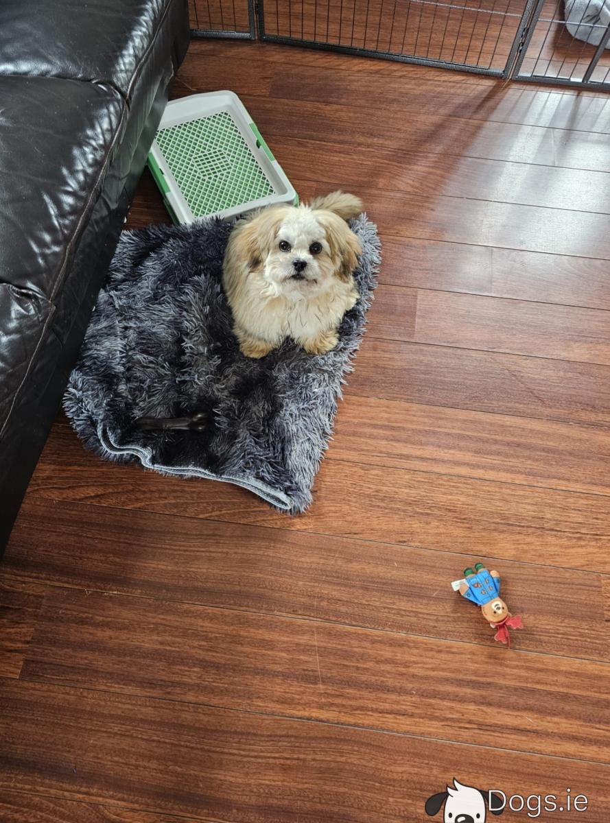 Friendly and calm male Shih Tzu puppy, 6 months old.