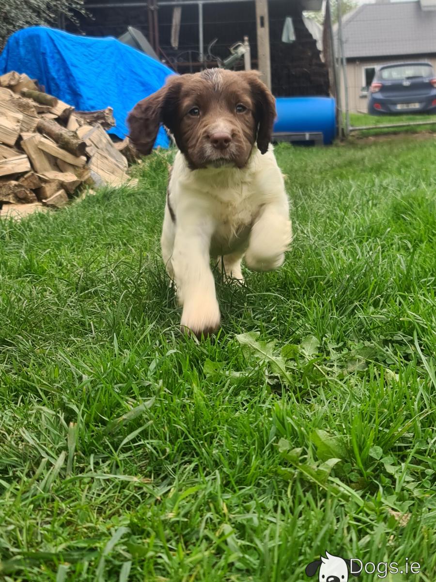 Each puppy is extremely alert and energetic, coming from a hunting background of both land and water. Springer Spaniels are known for their friendly and affectionate nature, making them excellent companions for families and active individuals alike. They require regular exercise and mental stimulation to thrive, given their high energy levels and intelligence. Both parents are hunting dogs, contributing to the puppies' strong instincts and playful demeanour.
