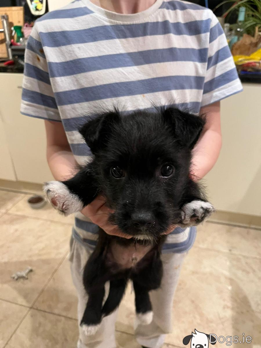 Beautiful and affectionate male West Highland Terrier X /Jack Russell cross puppy. Reared indoors with three small children, making him well-socialised and playful. He has been vet checked, microchipped, and vaccinated, ensuring he is ready for his new home.