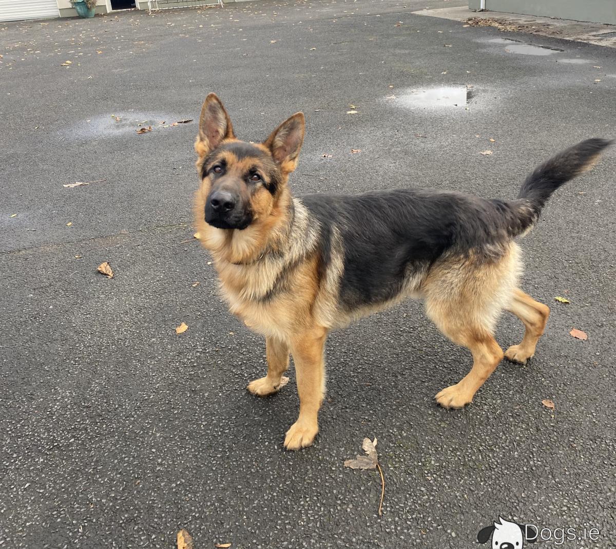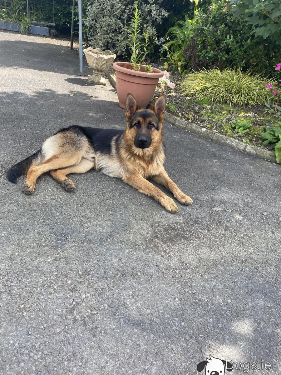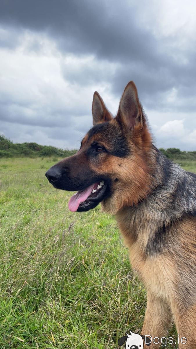 Striking pure bread IKC registered German Shepherd male for stud. Bobby is just over a year old and has already sired a fantastic litter of 10 pups. He is a wonderful friendly, loyal and affectionate German shepherd which is quite important. Bobby is a farm dog and loves to be involved in all daily activities. Photos of litter from Bobby available on request.