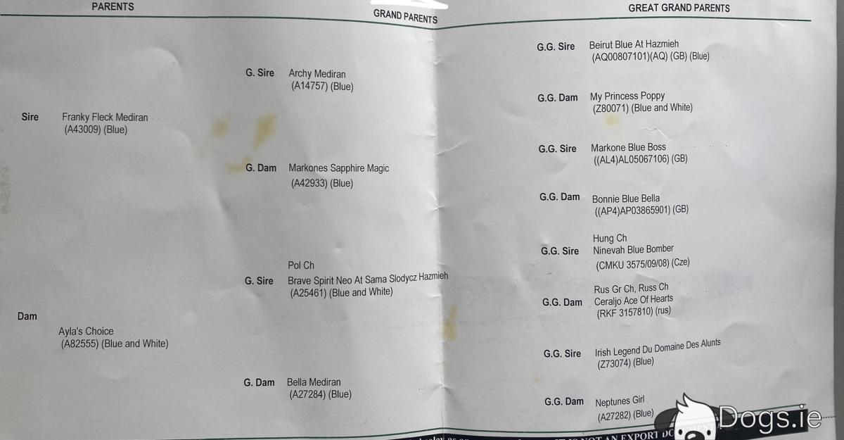 He’s Irish Kennel Club (IKC) Registered we have the official papers for inspection.